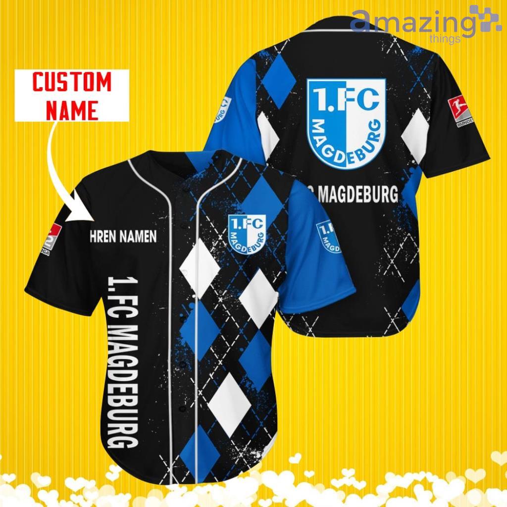 1. FC Magdeburg Sports Logo Jersey Baseball Shirt Custom Name With Diamond Brush Pattern For Men And Women Information:
