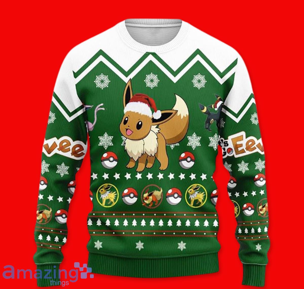 Crafted with the utmost attention to detail, this Christmas sweater features a delightful 3D design of everyone’s favorite Pokémon, Eevee. The intricate stitching brings this beloved character to life, making it a delightful gift for Pokémon enthusiasts and fans of all ages.