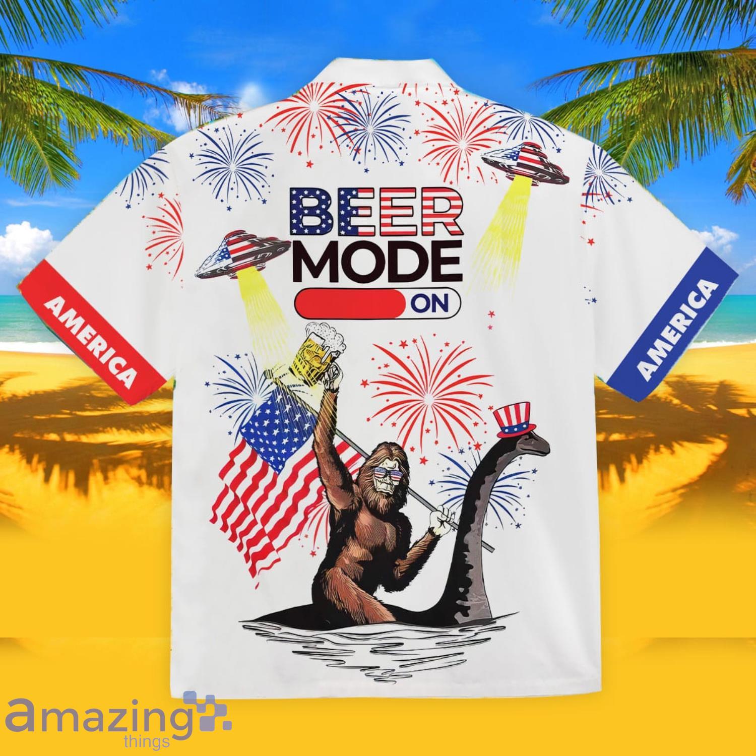 4th Of July Bigfoot Drink Beer Short Sleeve Hawaiian Shirt