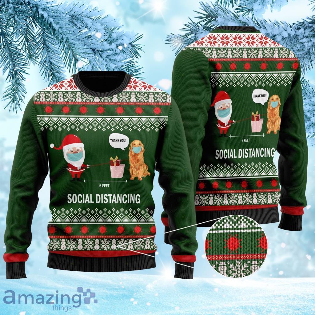 Some of the 6 Feet Social Distancing Golden Retriever And Santa Claus Christmas Ugly Sweater 3D For Golden Retriever Lovers On Christmas Days photos