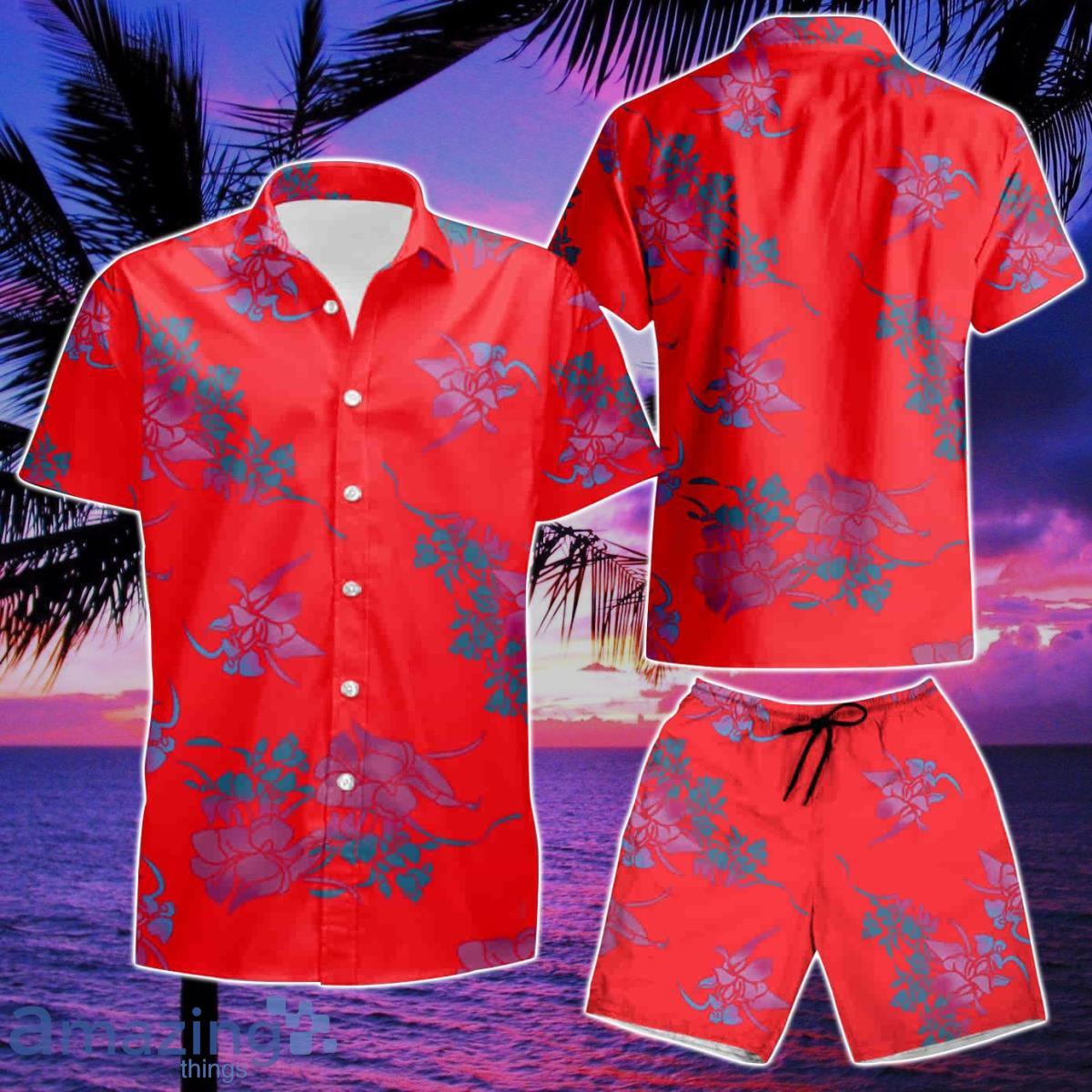 80s Red Poly Hilo Hattie Summer Hawaiian Shirt And Short
