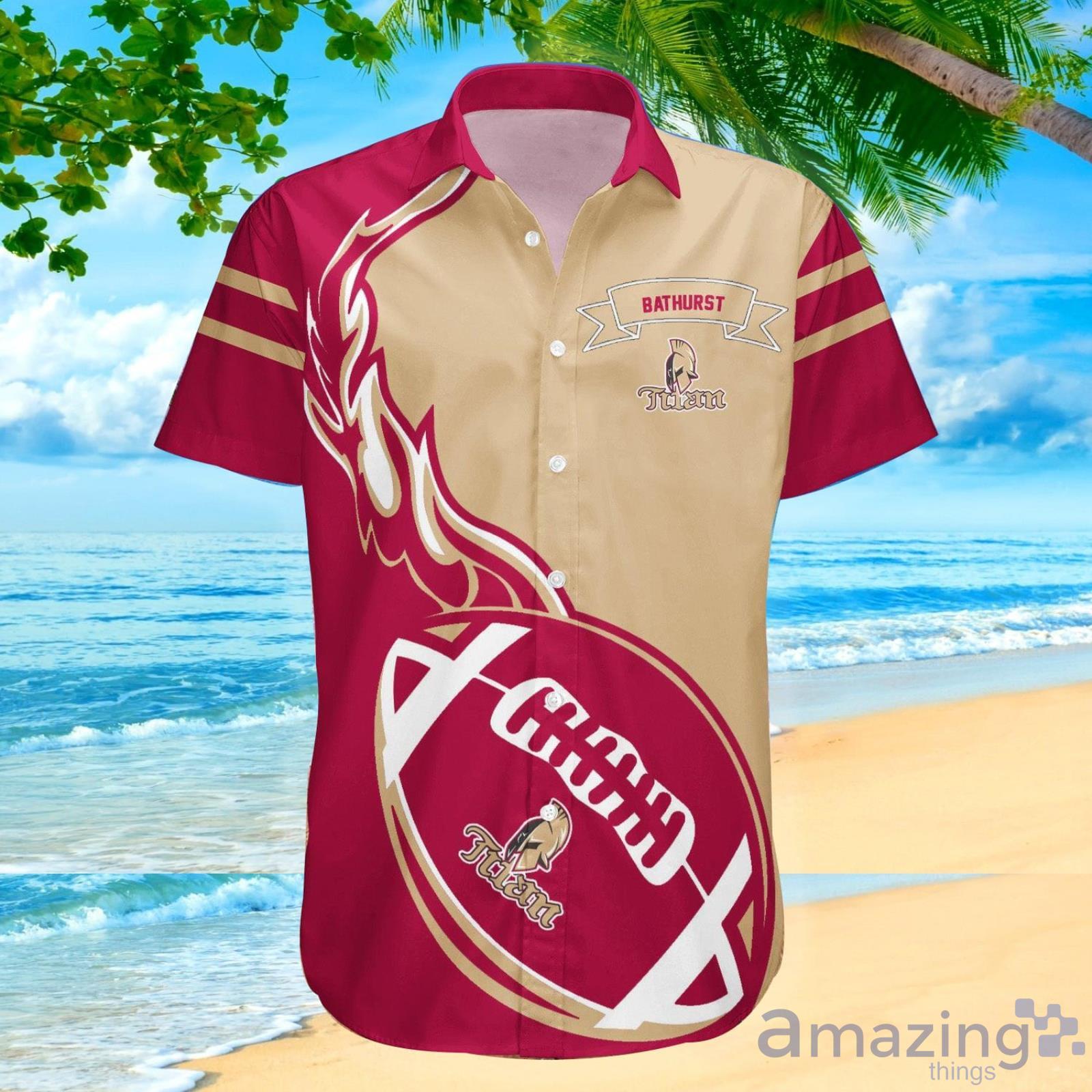 Who’s ready to show their support for the Acadie-Bathurst Titan with this stylish Hawaiian shirt? This shirt is perfect for any fan of the hockey team, and is sure to show your spirit whether you’re at the game or just out and about. The shirt features the team’s colors and logo in a bold, eye-catching design, and is made from a comfortable and lightweight material. Whether you’re cheering on the Titan at the arena or enjoying a sunny day at the beach, this shirt is a great way to show your support for the team. So grab one today and show your Titan pride!