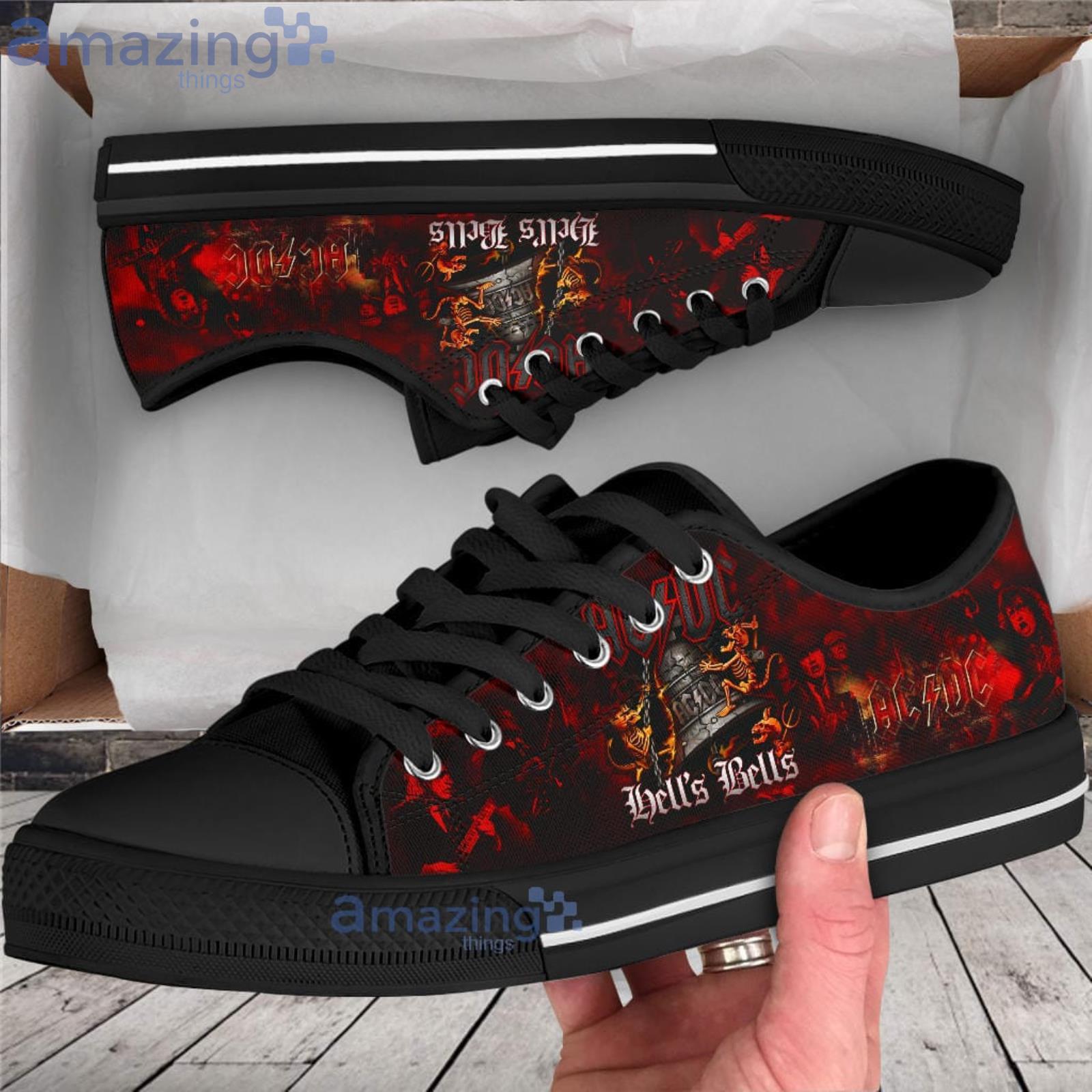 These are the perfect shoes for any ACDC fan! They are low top shoes with a black and red design. They would make a great gift for any fan of the band!
