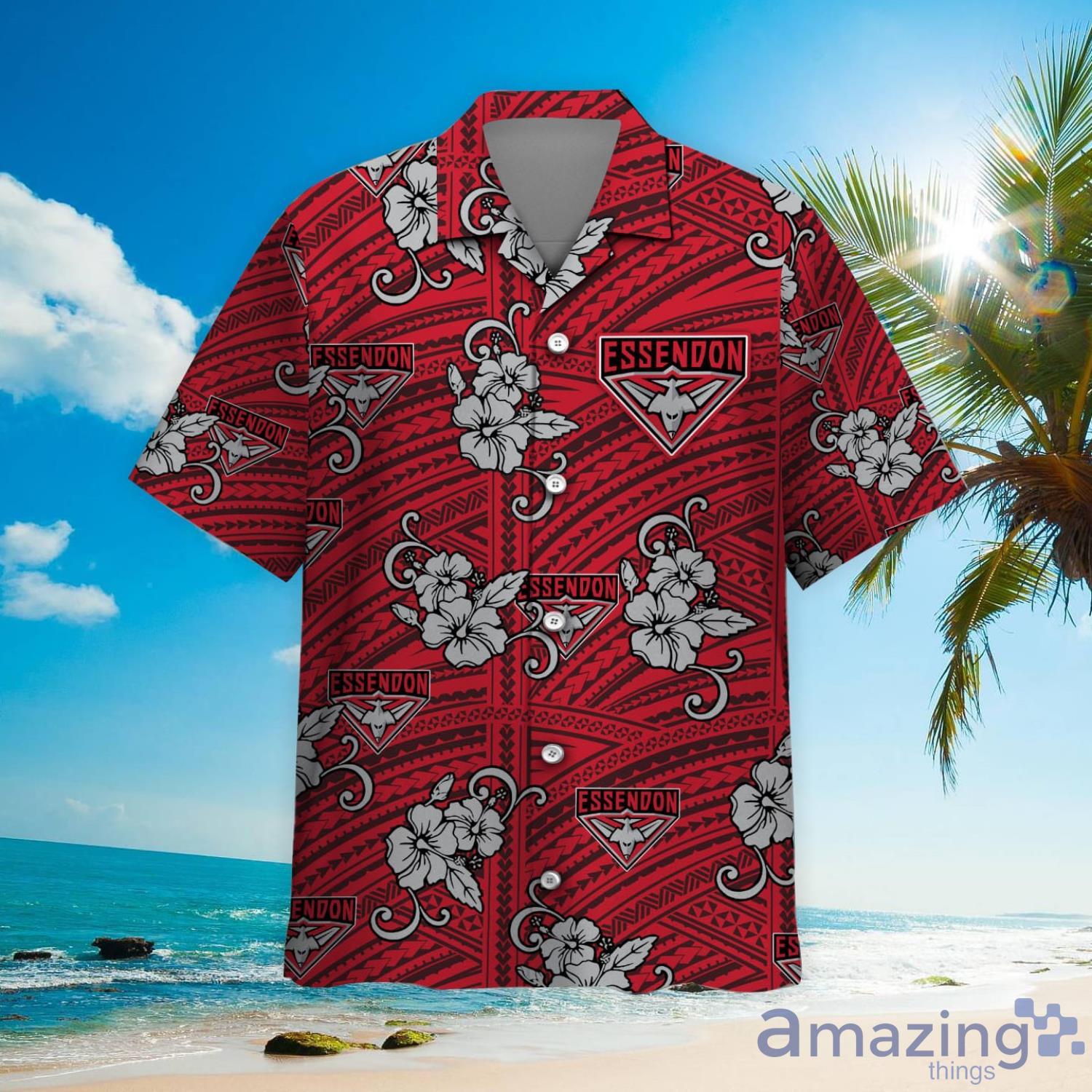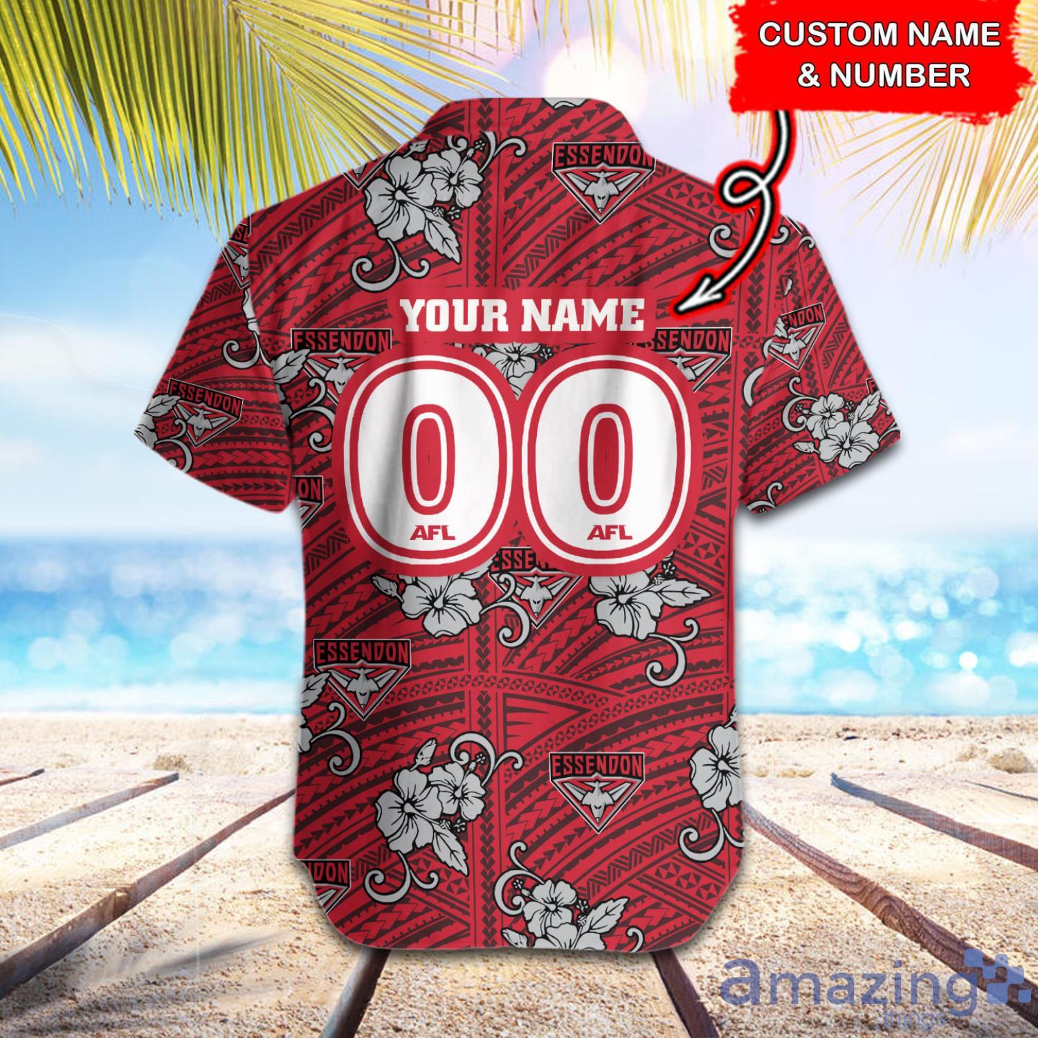 AFL Essendon Bombers Tribal Pattern Custom Name & Number Hawaiian Shirt