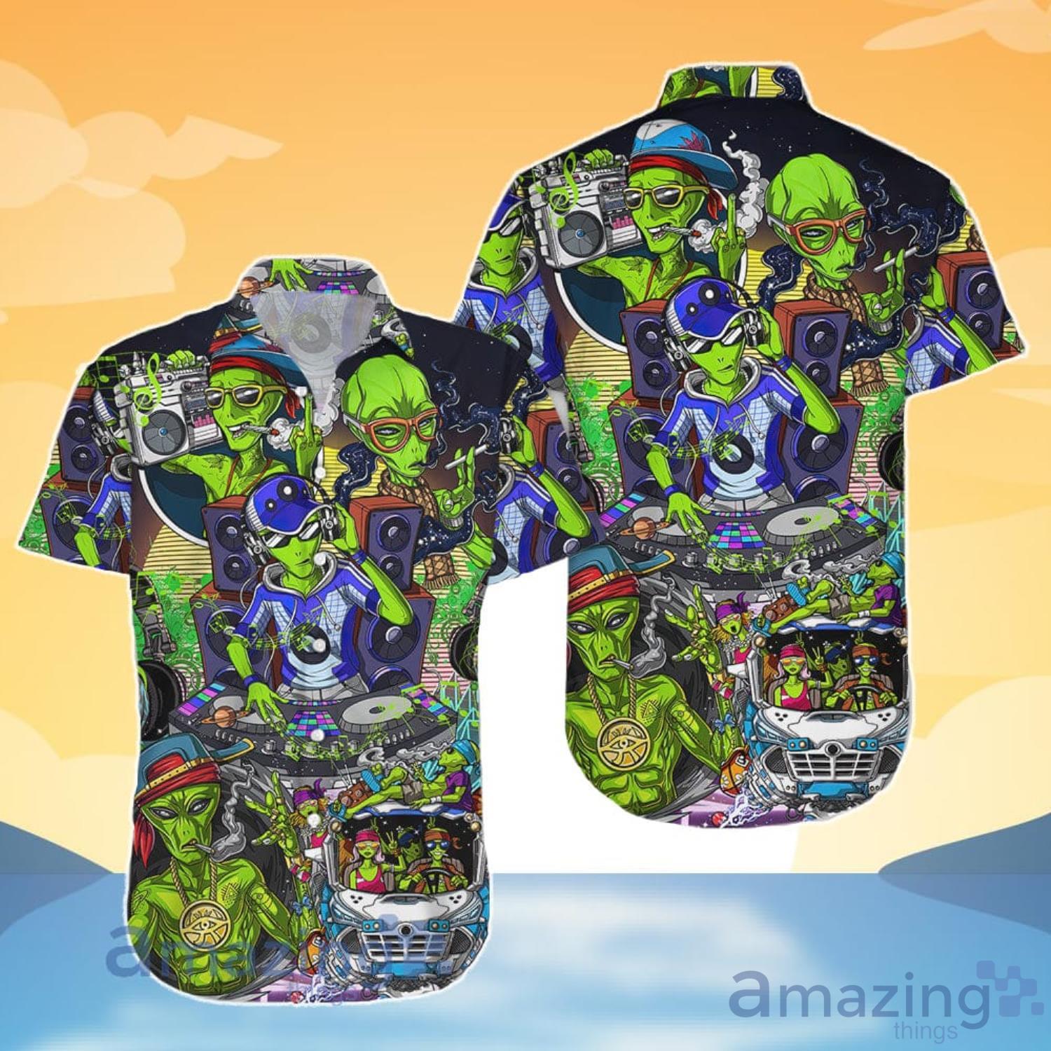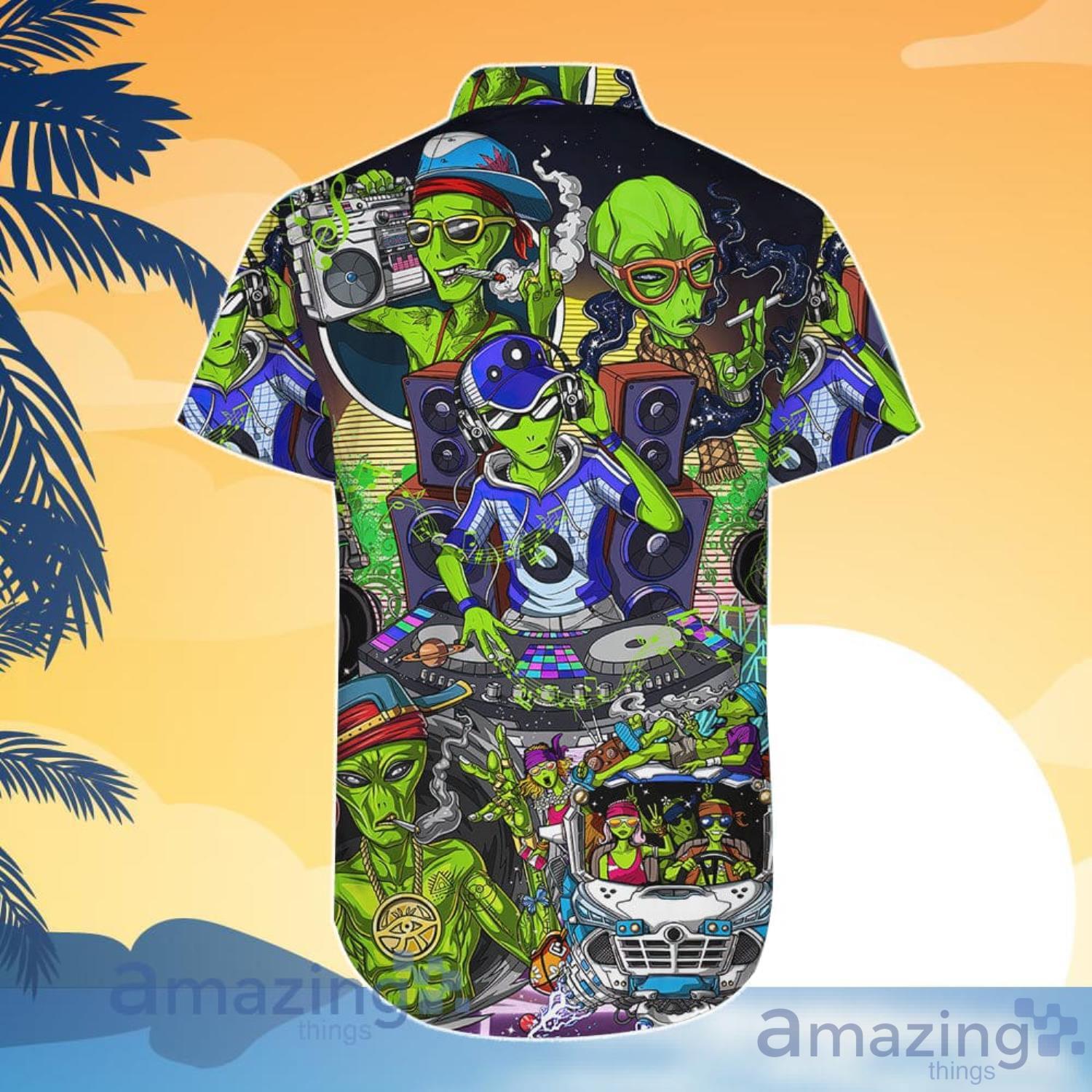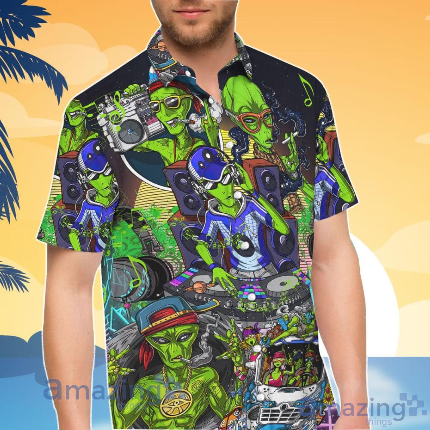 Ailen Hippies Aliens Music DJ Smokings Aloha Funny Hawaiian Shirt And Shorts Details: