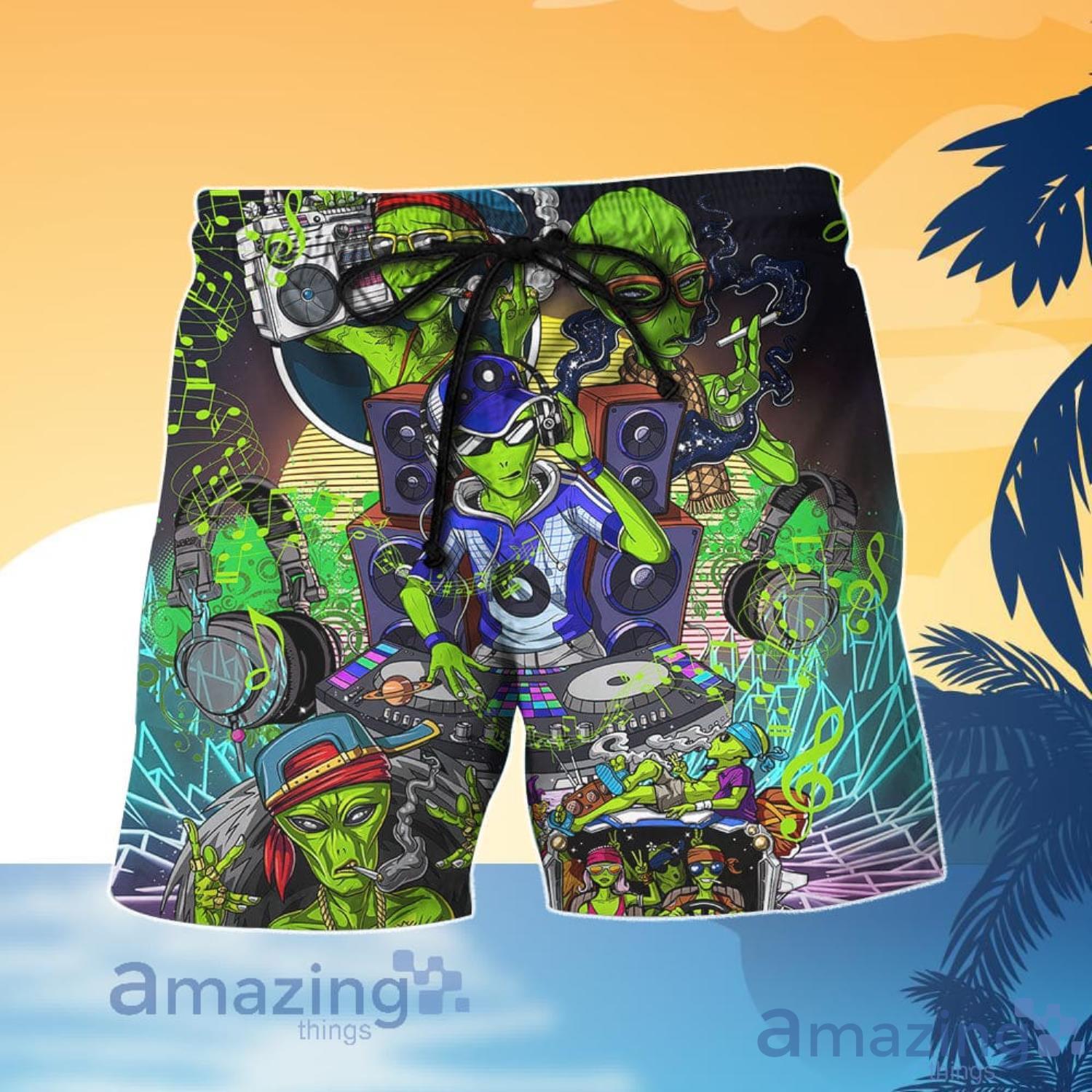 Some of the Ailen Hippies Aliens Music DJ Smokings Aloha Funny Hawaiian Shirt And Shorts photos