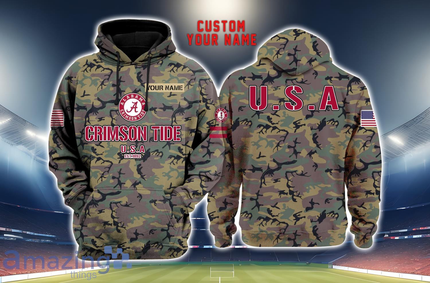Alabama Crimson Tide 3D Printing Army Camo Pattern Unisex Hoodies Custom Name For Fans