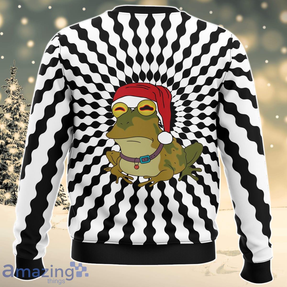 Featuring the iconic Hypnotoad from the beloved Futurama series, this sweater is sure to turn heads at any holiday gathering. The vibrant and detailed design showcases the hypnotic amphibian in all its glory, adding a touch of humor and nostalgia to your Christmas celebrations.