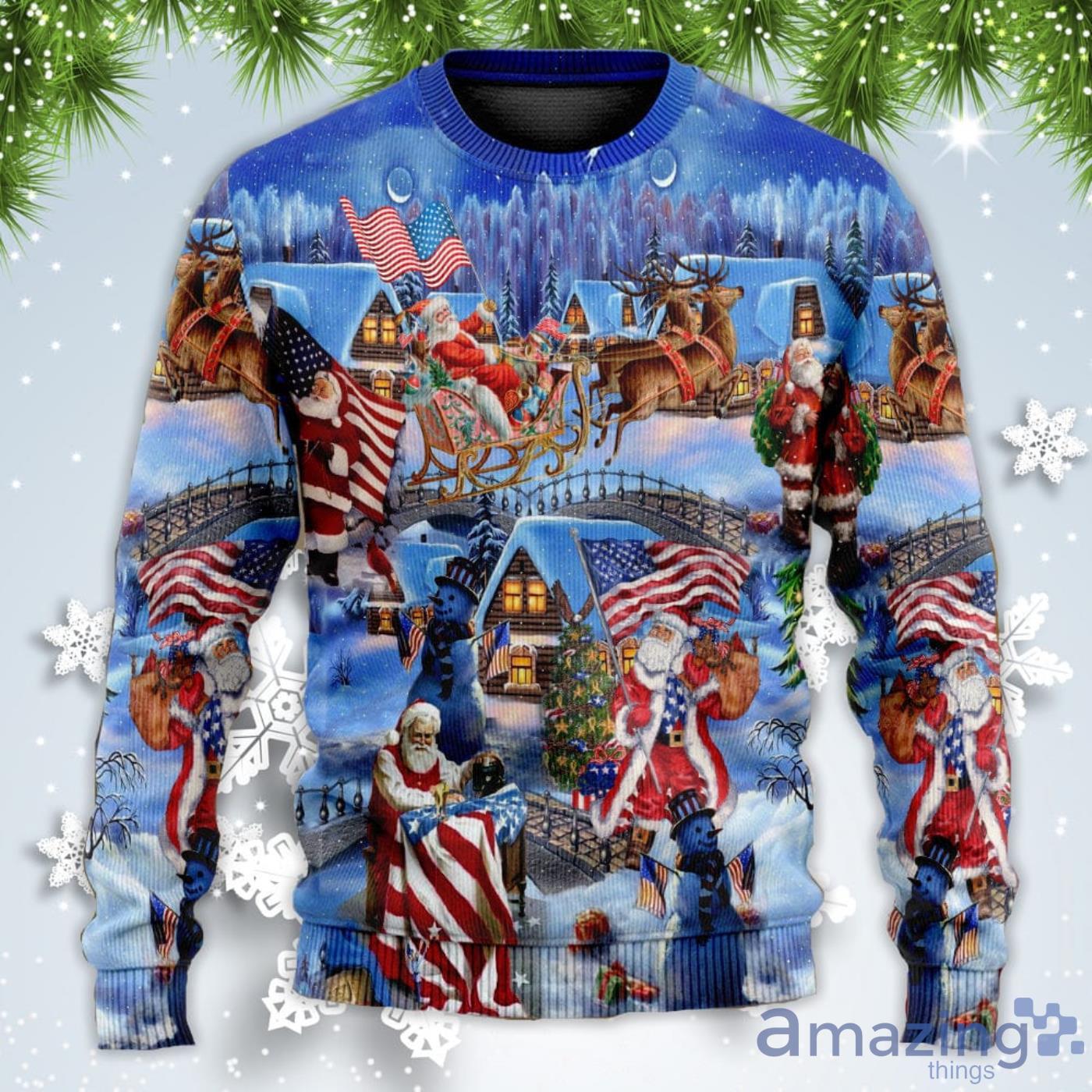America Patriotic Santa Claus Christmas Sweatshirt Sweater Informations: