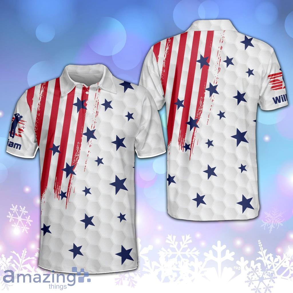 Crafted with meticulous attention to detail, the American Flag Golf Polo Shirt V1 features a striking design of the iconic stars and stripes. The vibrant colors of the American flag stand out boldly against the classic white background, making a powerful statement on and off the golf course.