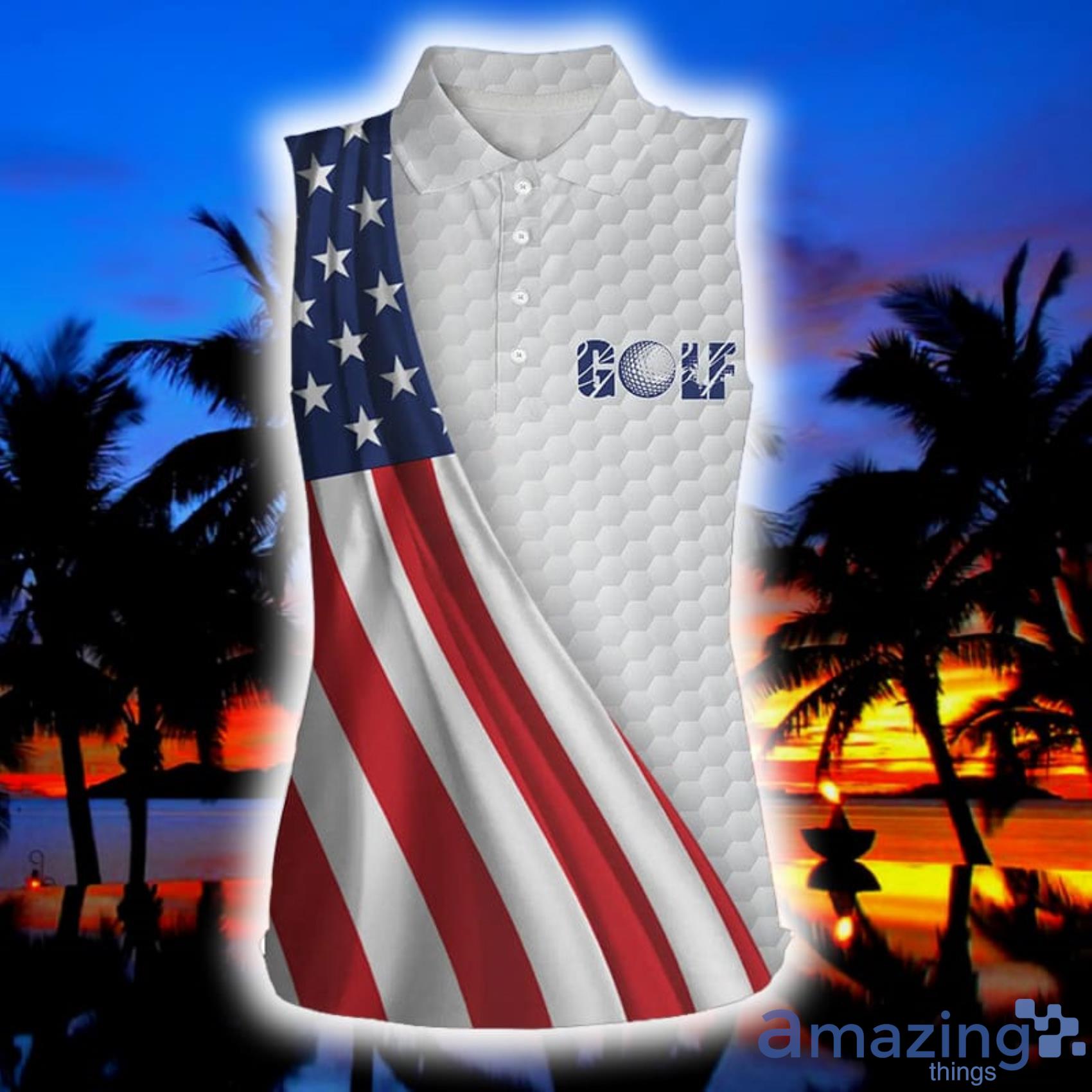 Featuring a stunning American flag white golf ball skin design, this polo shirt is perfect for showing your love for your country while also looking fashionable on the golf course. The sleeveless design allows for maximum mobility and breathability, ensuring that you stay cool and comfortable throughout your game.