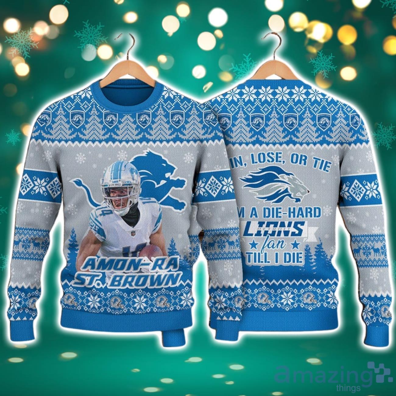 Amon-Ra St. Brown Detroit Lions I Am A Die Hard Lions Fan Till I Die NFL Christmas Ugly Sweater