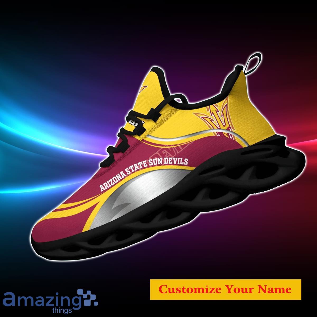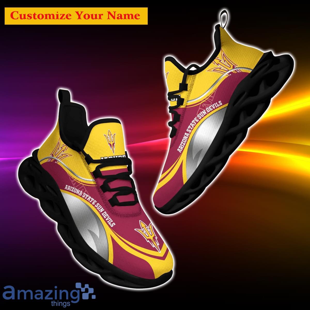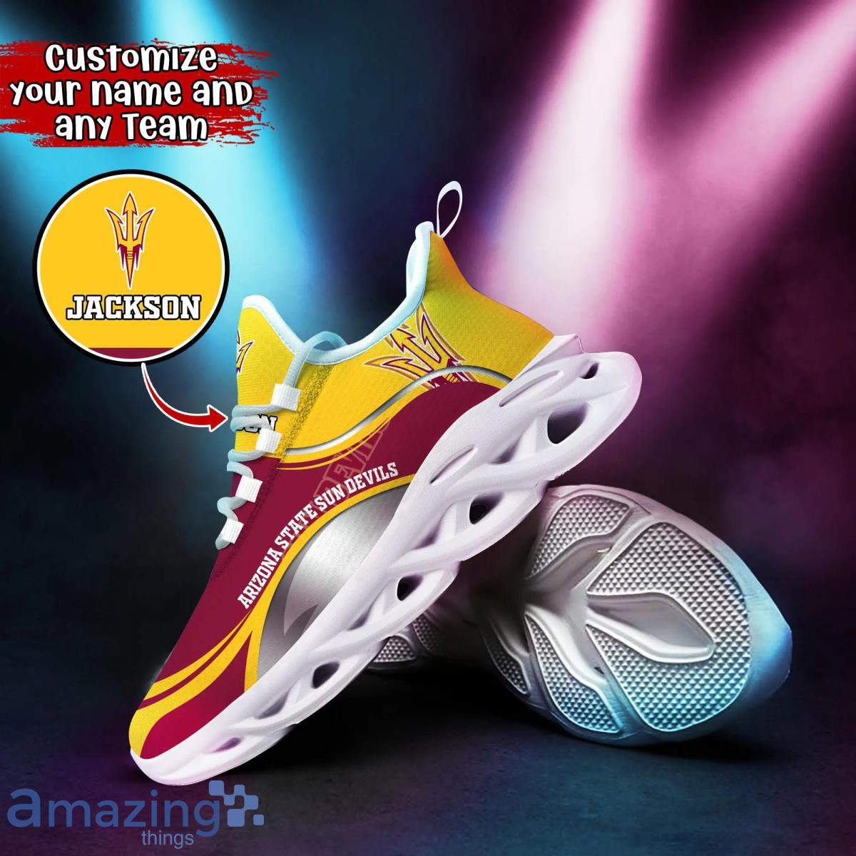 So, why wait? Step up your fan game and let the world know where your loyalty lies with the Arizona State Sun Devils NCAA2 Custom Name Max Soul Shoes. Get yours now and bring your team pride to new heights!