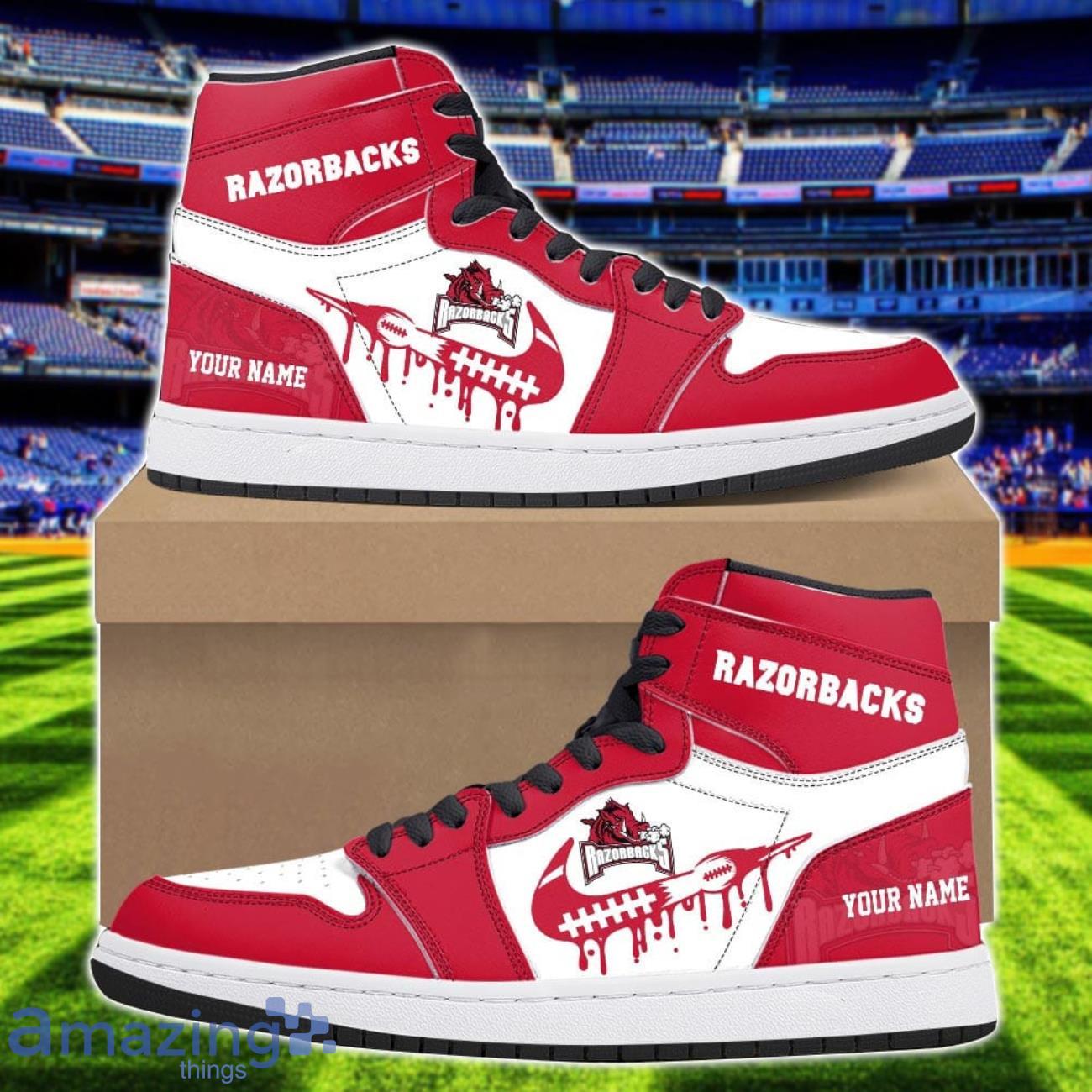 Arkansas Razorbacks Air Jordan 1 Shoes Sport Hightop Sneakers For Men And Women Custom Name Information: