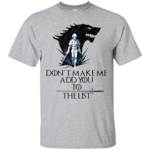Arya Stark’s list was more than just a collection of names; it was a vow, a promise of retribution against those who had wronged her or her family. From the early betrayals to the devastating losses, Arya’s list was a driving force throughout her journey. Wearing the Don’t Make Me Add You To The List Shirt is a nod to her resilience, determination, and the stark consequences of crossing her.