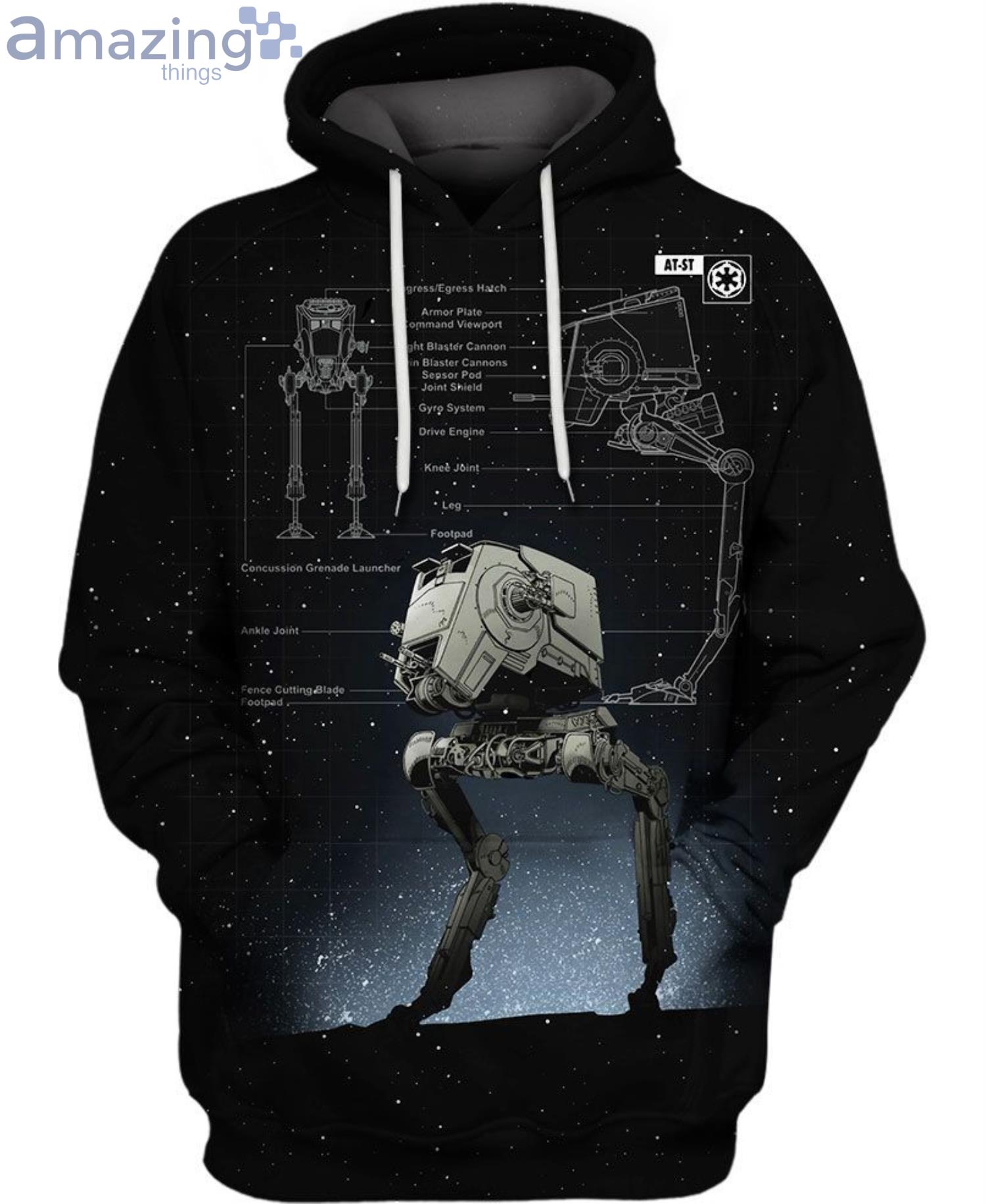 This exceptional hoodie features intricate Star Wars all over prints, showcasing the iconic At-St Walker in a design that wraps around the garment. It’s not just a piece of clothing; it’s a wearable work of art that ensures you stand out from the crowd.
