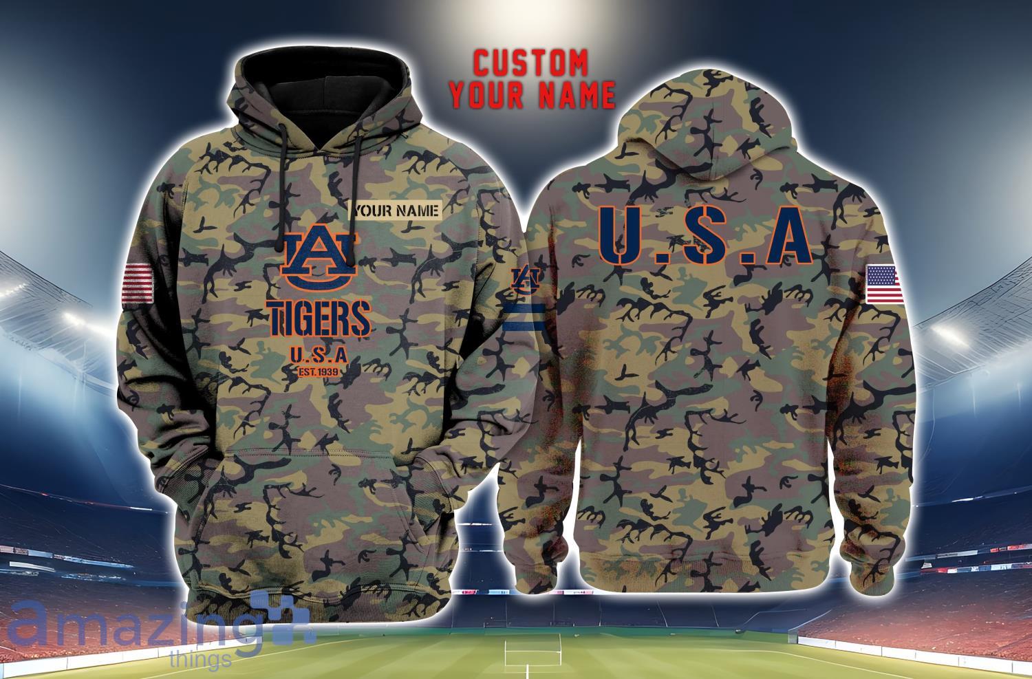 Some of the Auburn Tigers 3D Printing Army Camo Pattern Unisex Hoodies Custom Name For Fans photos