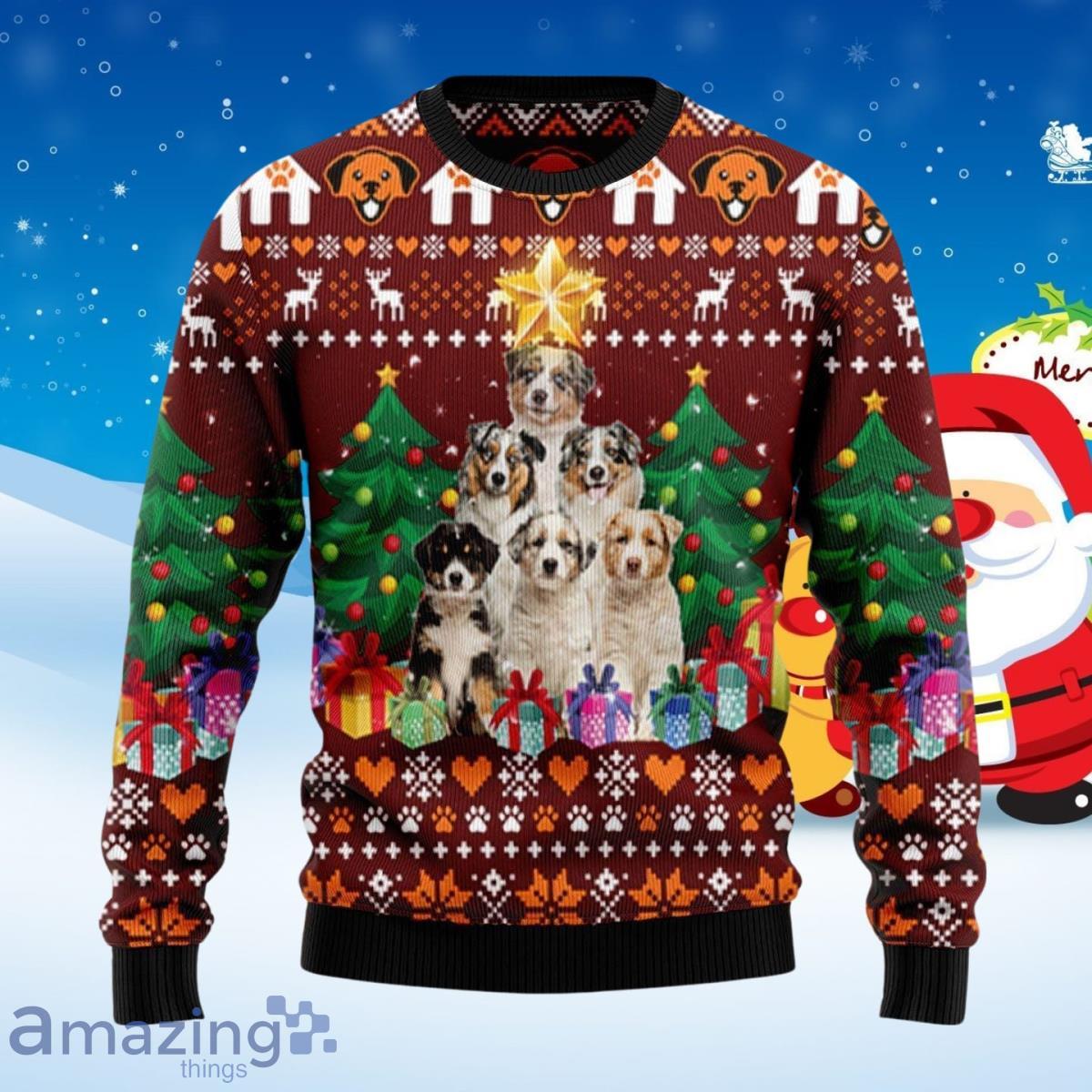 Not only is this sweater stylish, but it also makes an ideal gift for dog lovers and Christmas enthusiasts alike. The Australian Shepherd Pine Tree Ugly Christmas Sweater is a unique and thoughtful present that showcases your recipient’s love for this remarkable breed and their festive spirit. It’s a surefire way to make them feel special during the holiday season.