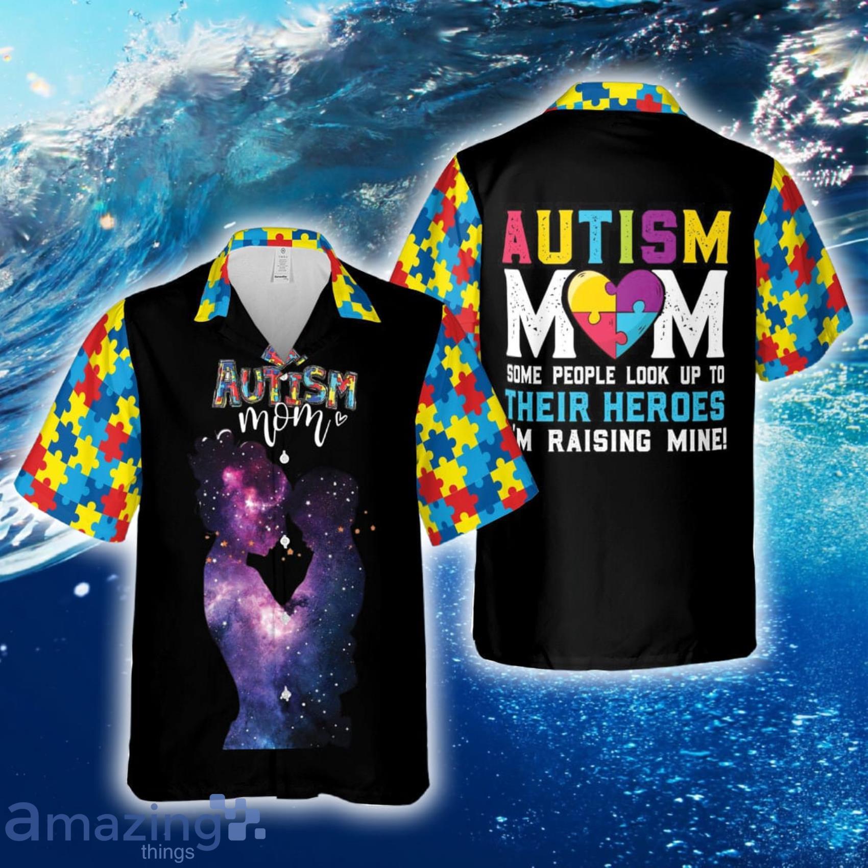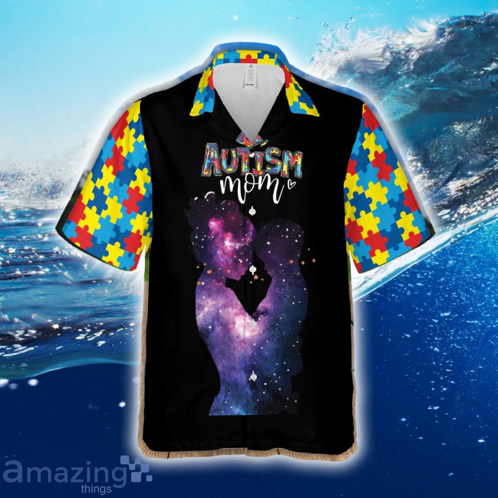 As a proud autism mom, you can show your support and raise awareness while looking stylish and comfortable. Get your hands on our Autism Mom Puzzle Galaxy Hawaiian Shirt and Beach Short set today and make a statement that truly matters!