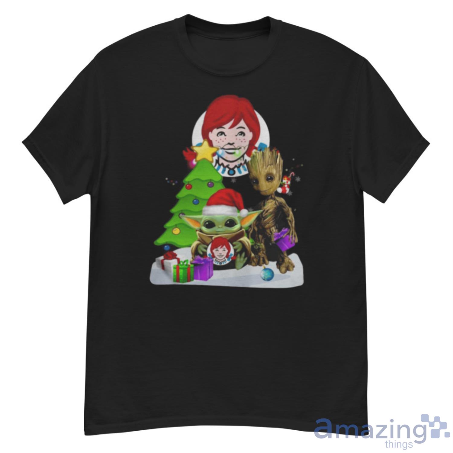 Some of the Awesome Santa Bigfoot And Baby Yoda Hug Wendy’s Snow Christmas Tree Shirt photos