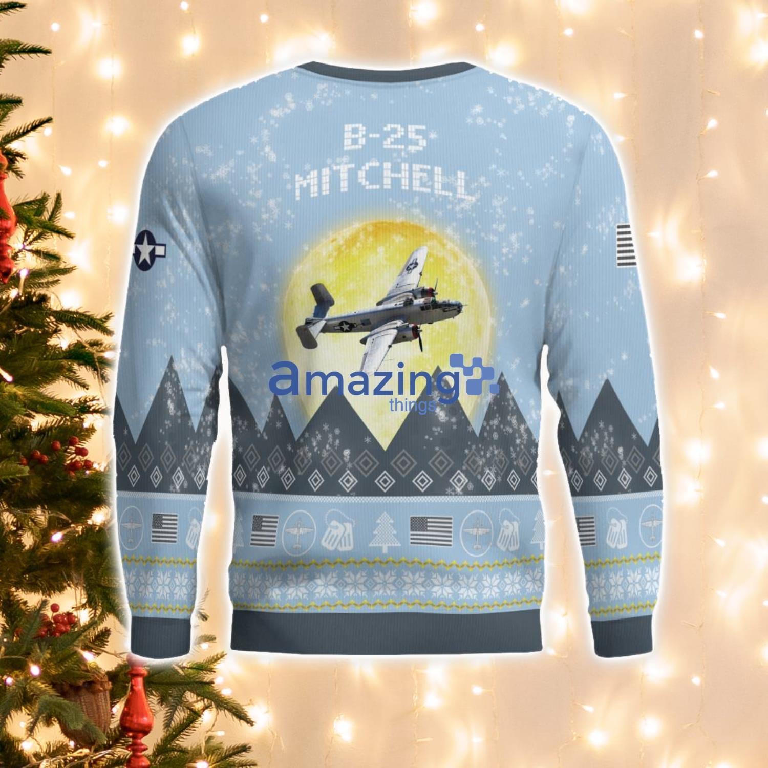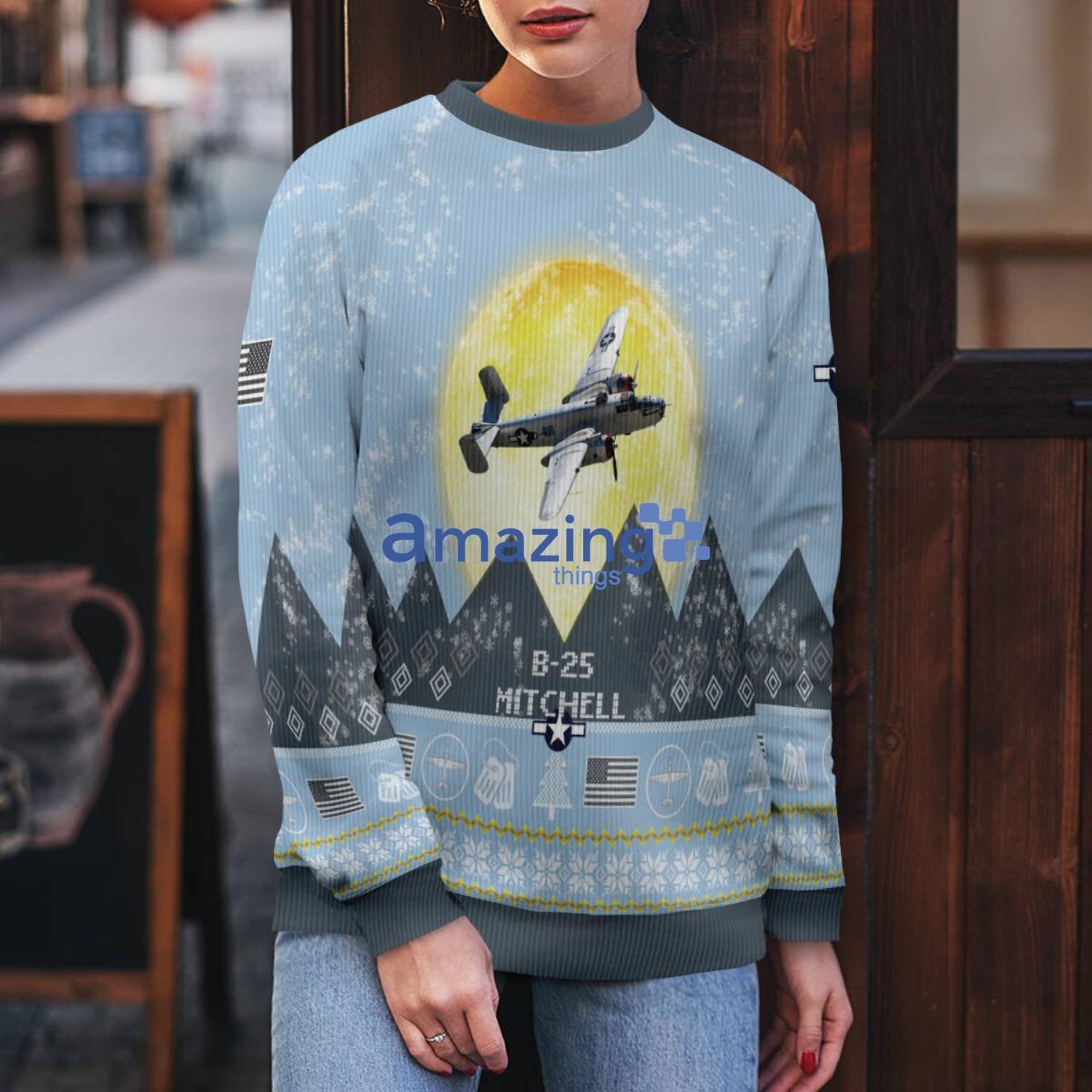 B-25 Mitchell B25 Light Blue Aircraft Moonlight 3D Ugly Christmas Sweater Christmas Gift Information