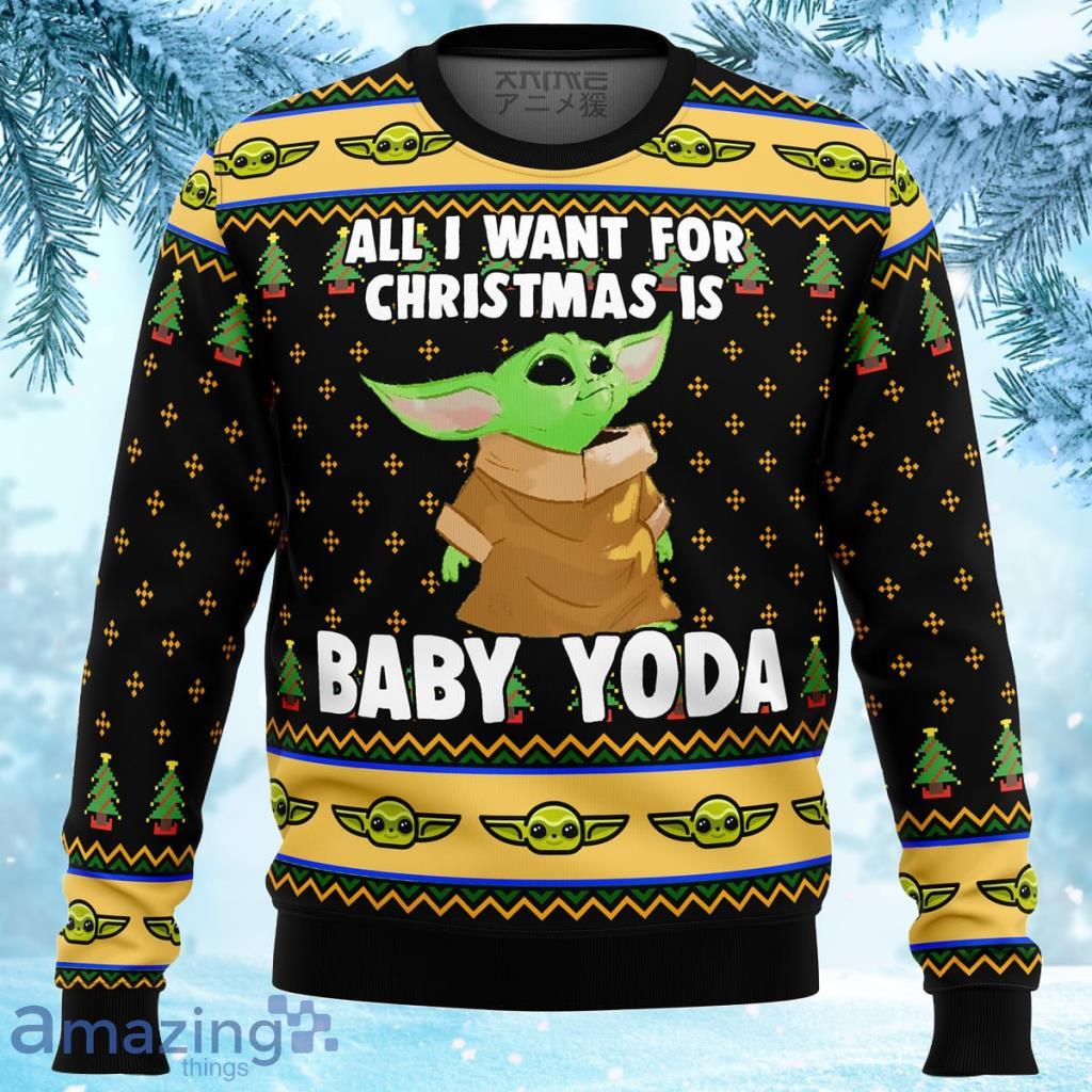 Whether you’re attending an ugly sweater party or simply want to spread some holiday cheer, our Baby Yoda All I Want Mandalorian Star Wars Ugly Christmas Sweater is the ideal choice. It’s an instant conversation starter and a unique way to showcase your love for this iconic franchise.