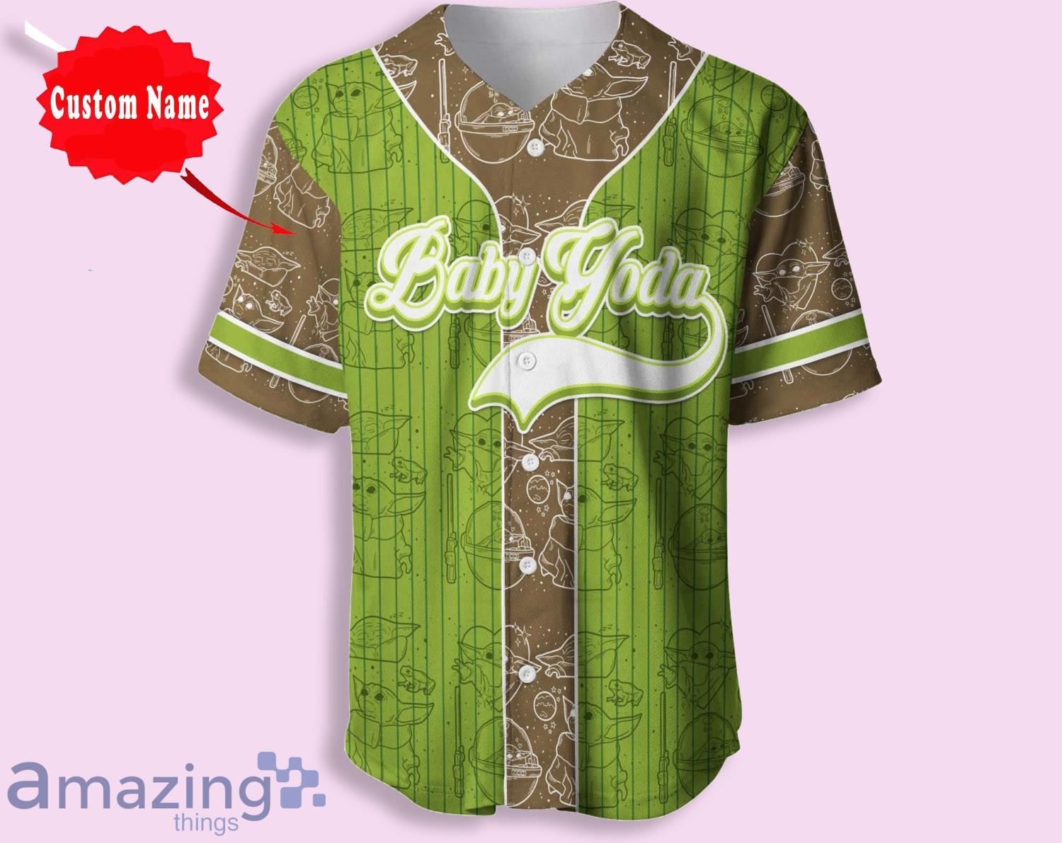 Baby Yoda Brown Navy Green Patterns Custom Name And Number Baseball Jersey Shirt Information: