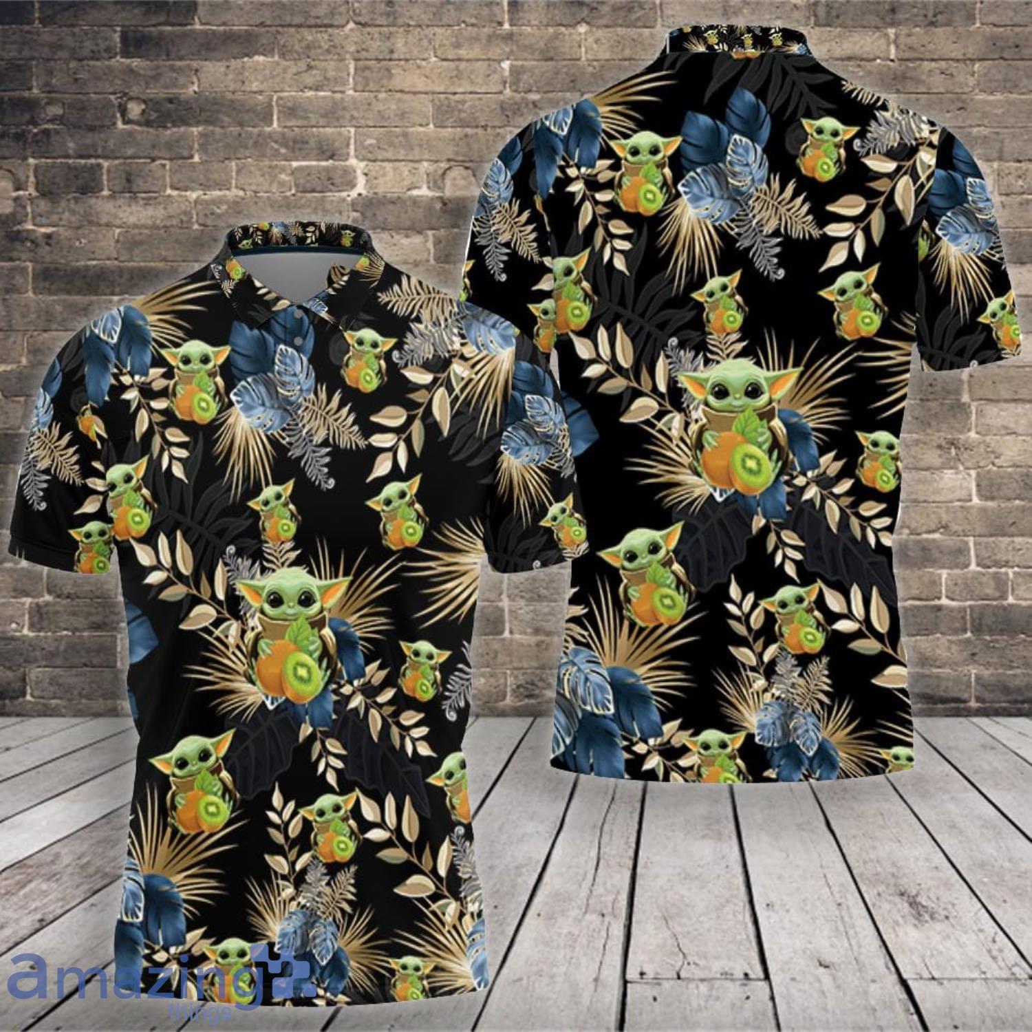 So why wait? Order your Baby Yoda Lover Baby Yoda Hugging Kiwis Blue Seamless Tropical Colorful Flowers On Black Polo Shirt today and show off your love for the cutest character in the galaxy!