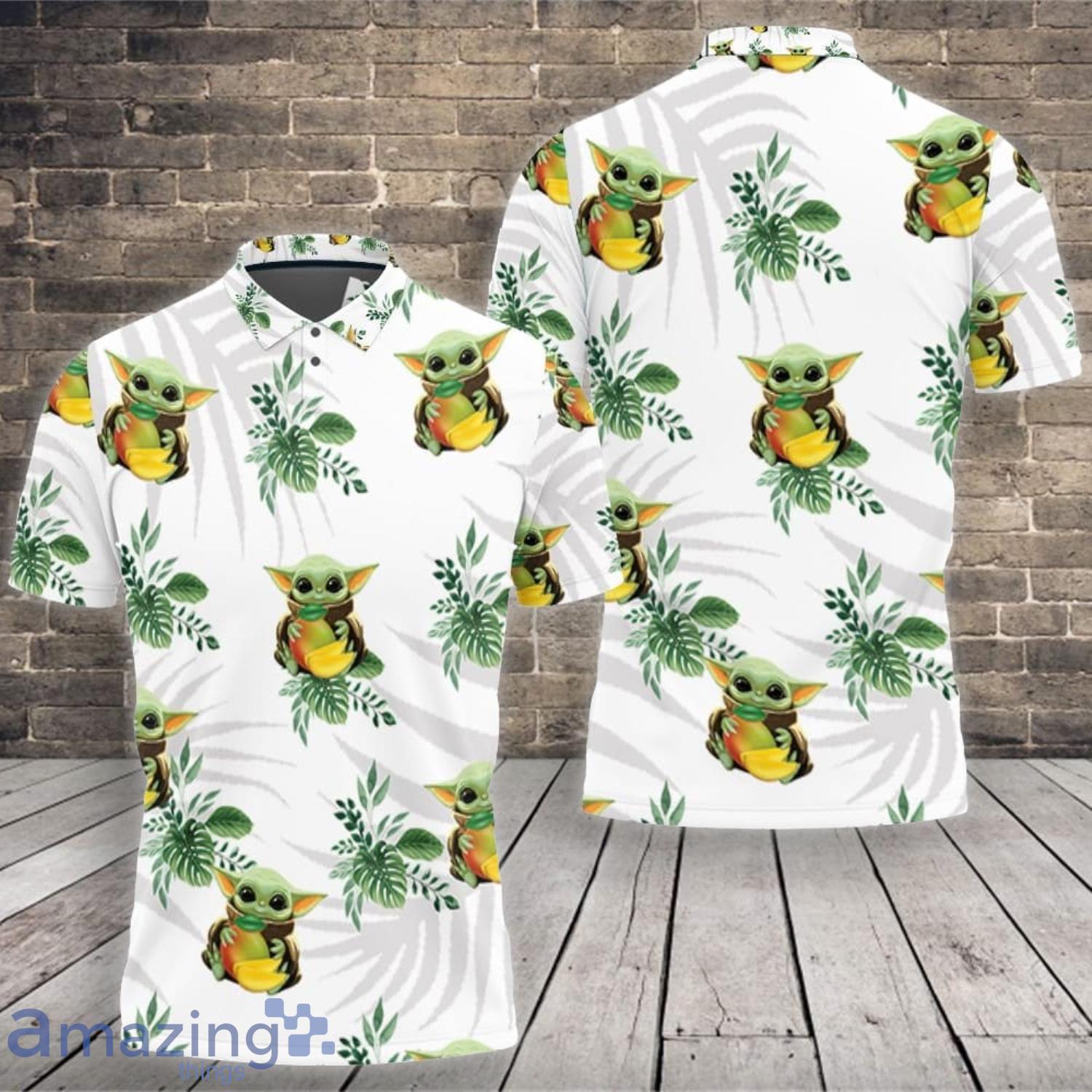 Crafted with the utmost care and precision, this polo shirt features a stunning all-over print of Baby Yoda embracing a delectable peach, surrounded by lush green leaves that transport you to a tropical paradise. The seamless design ensures a smooth and comfortable fit, perfect for all your adventures.
