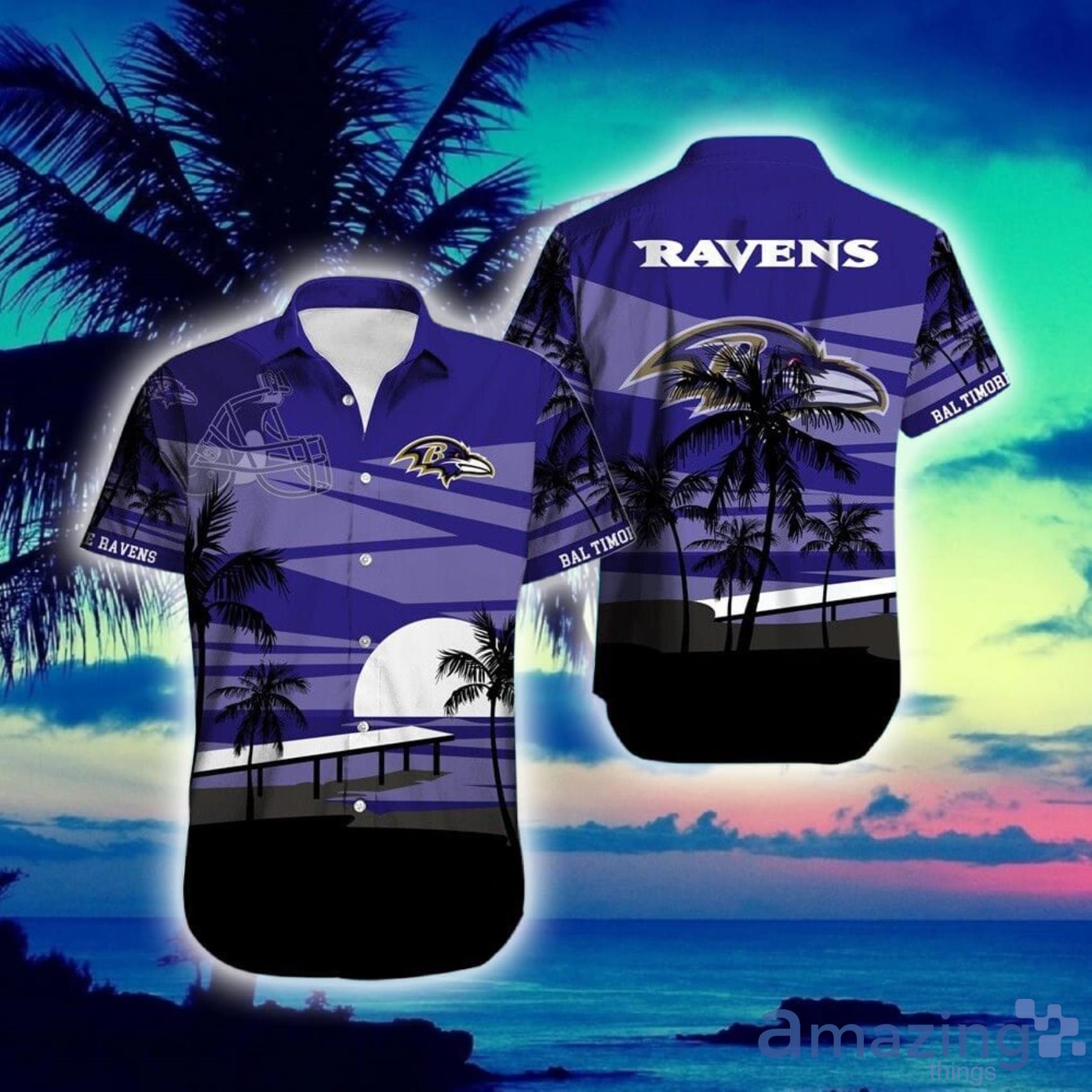 This design is available in a combo Hawaiian shirt & shorts. You can also get it separate. The default option is only one shirt or one pair of shorts. You have chosen a combo to get them both. This combo Baltimore Ravens Beach Sunset Short Sleeve Hawaiian Shirt And Beach Short is perfect to go to the beach. Get yours now or make a great gift.
