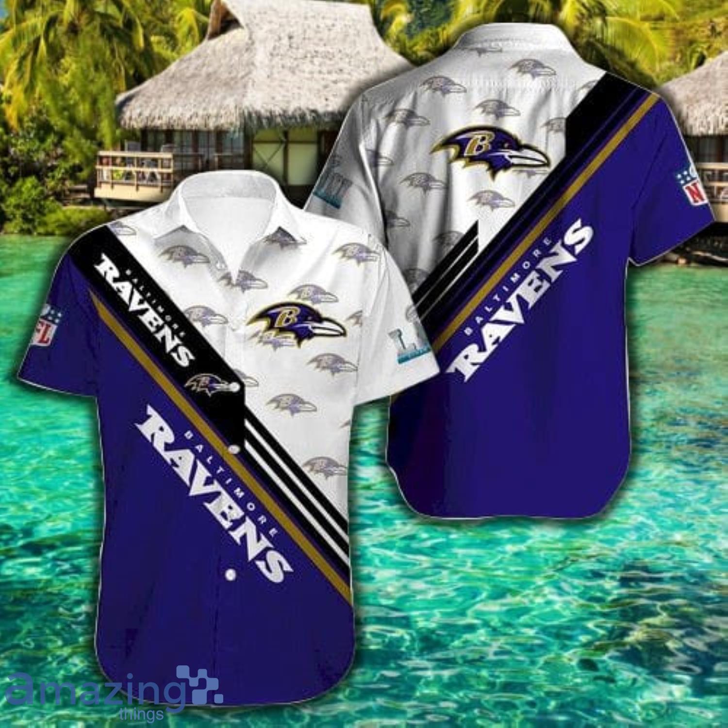 Baltimore Ravens Logo Pattern Short Sleeve Hawaiian Shirt Details: