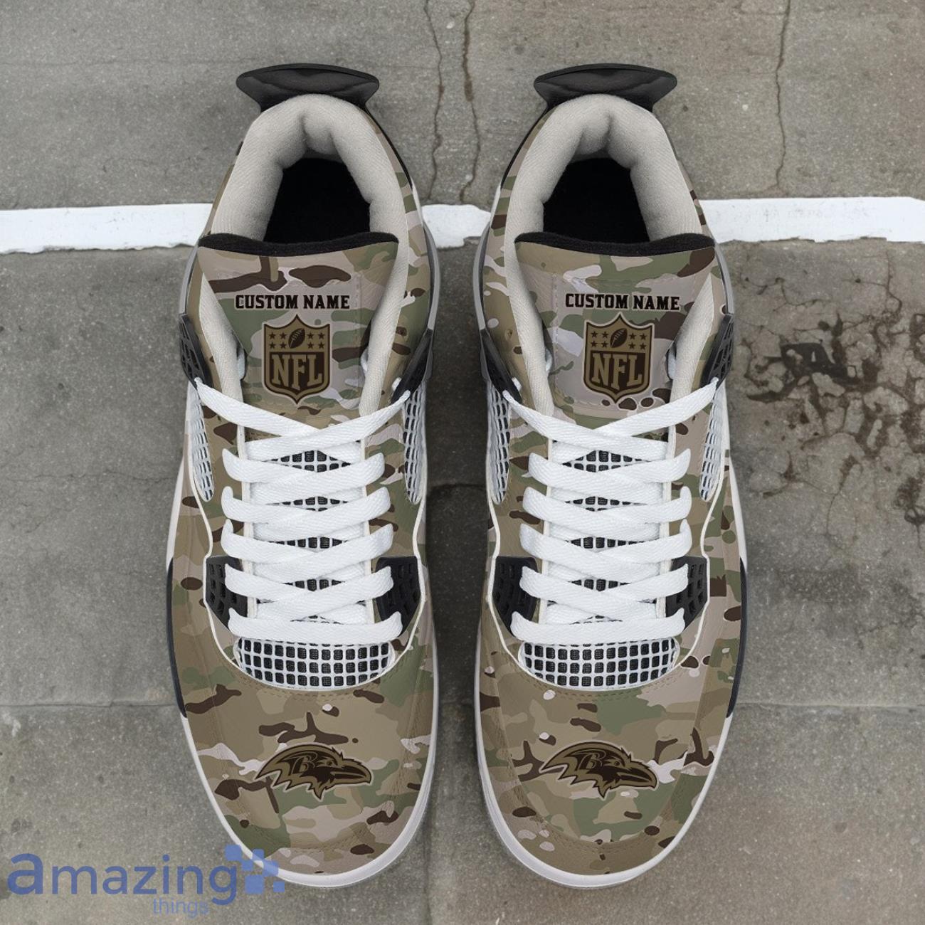 Baltimore Ravens NFL Design Camo Air Jordan 4 Custom Name Information