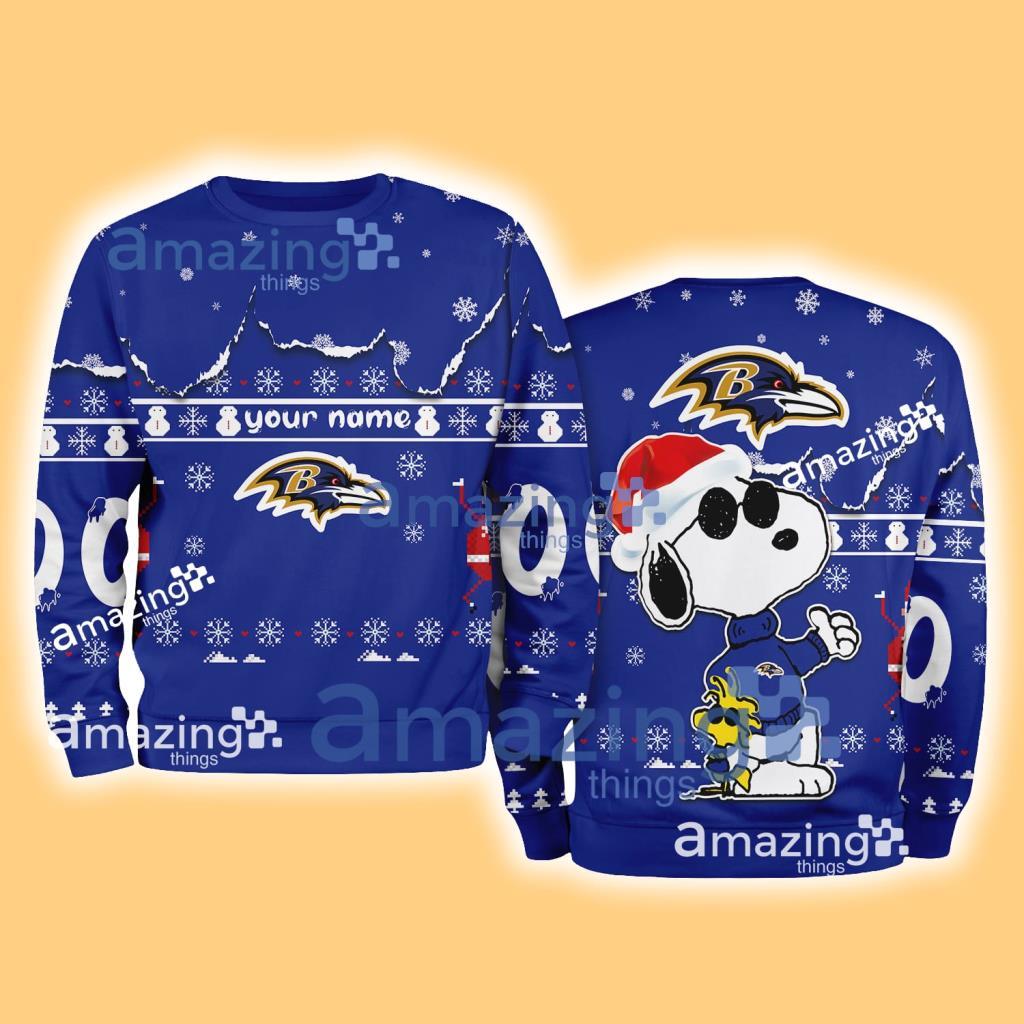 Baltimore Ravens NFL Snoopy and Woodstock Cute Personalized Number Christmas Ugly Sweater New Gift Limited Edition Information