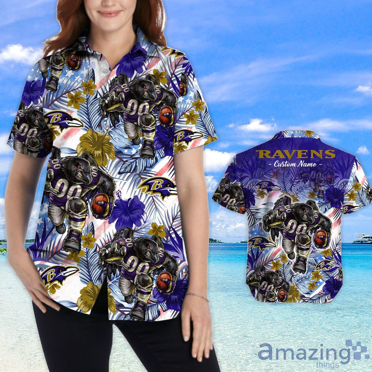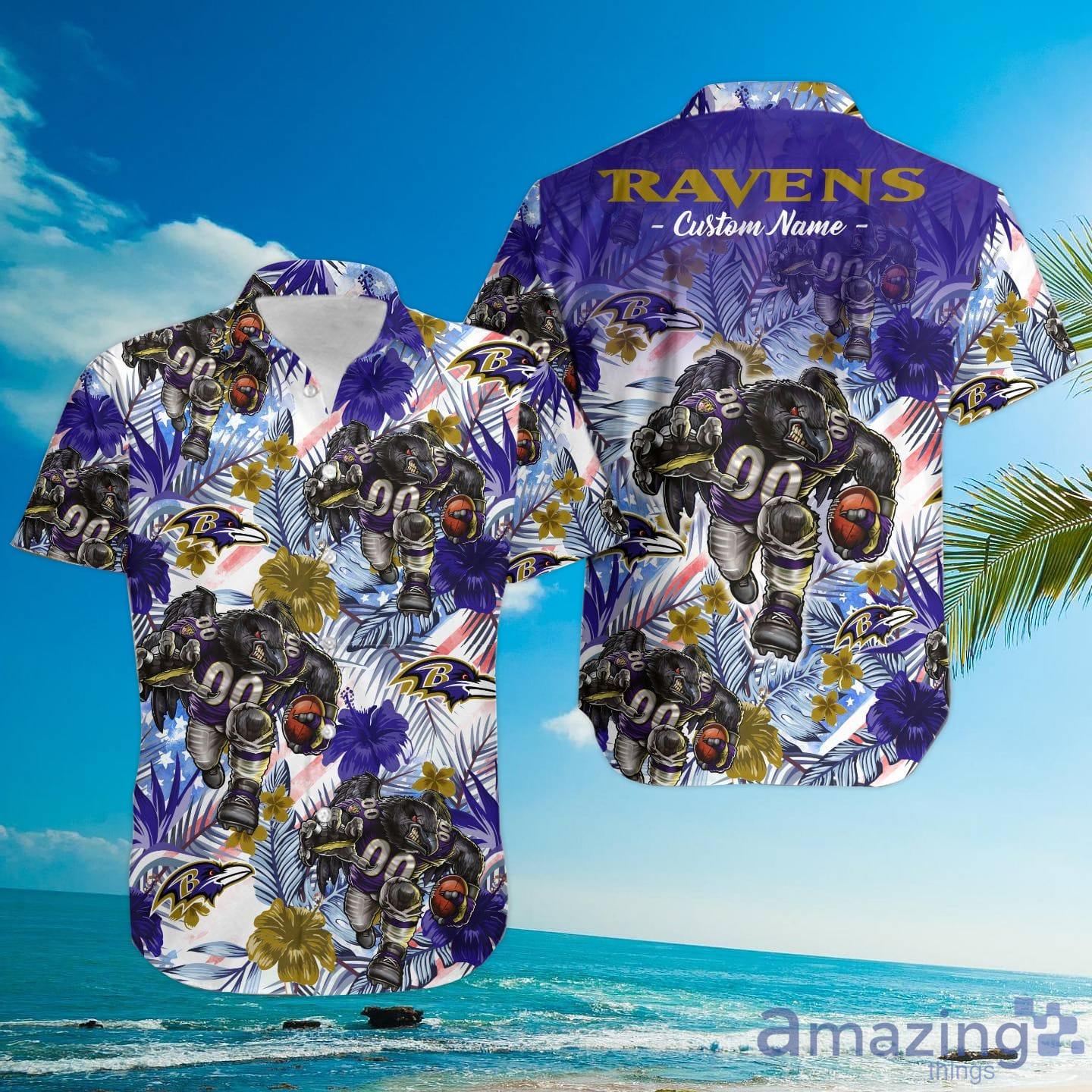 Some of the Baltimore Ravens Tropical Floral Custom Name Aloha Hawaiian Shirt photos