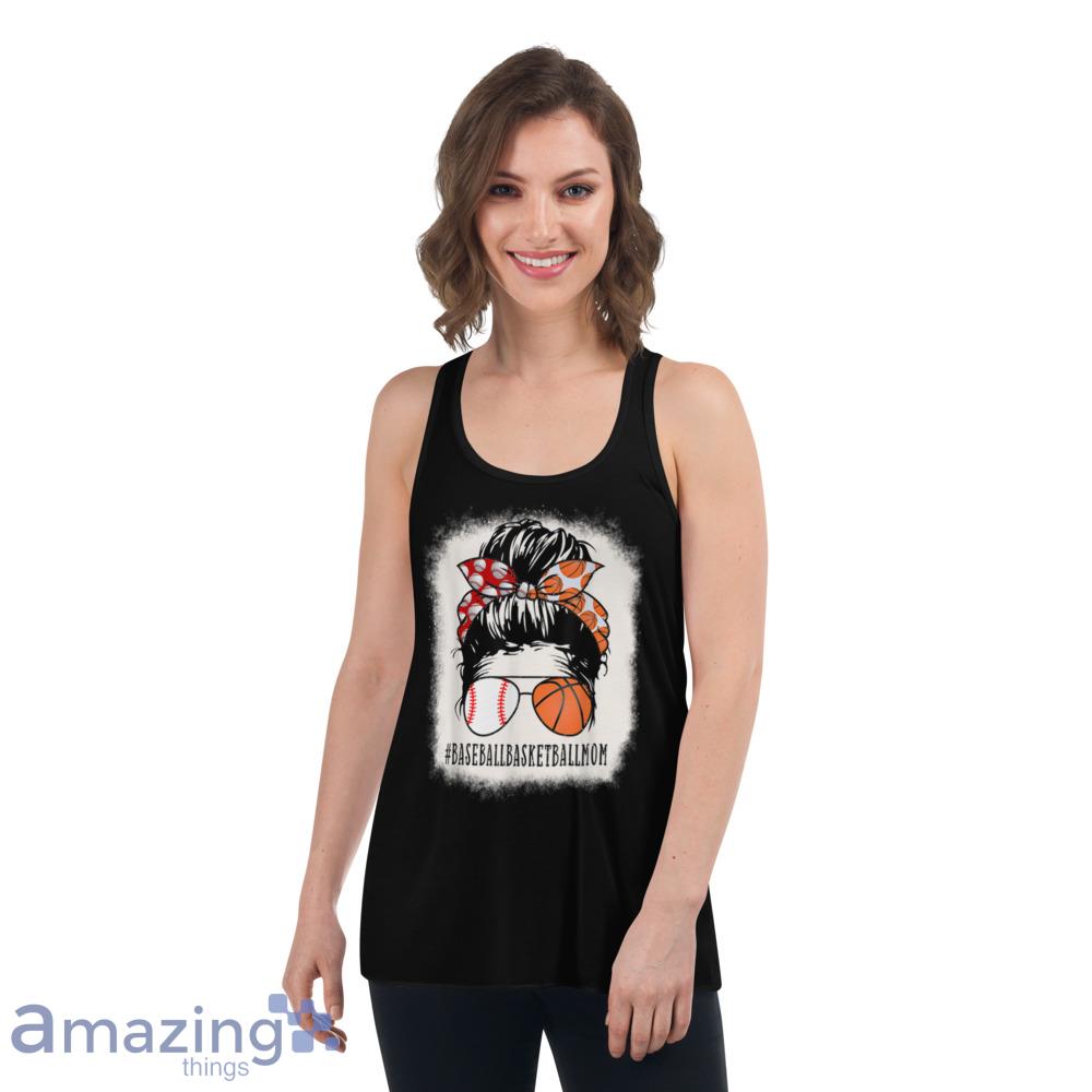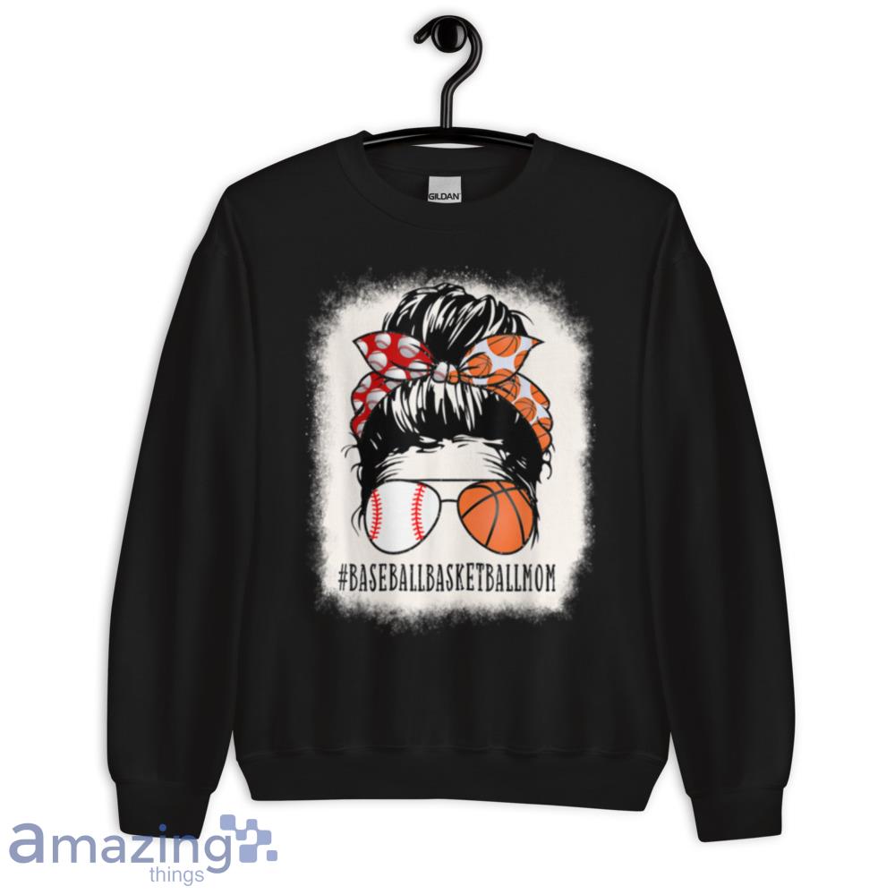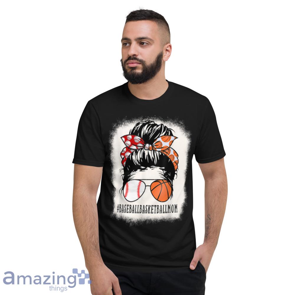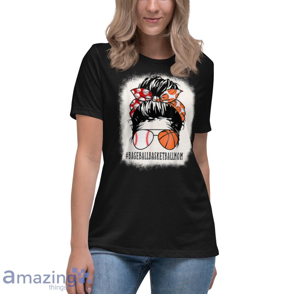 Baseball Basketball Mom Messy Bun Girl Bleached Mother’s Day T-Shirt