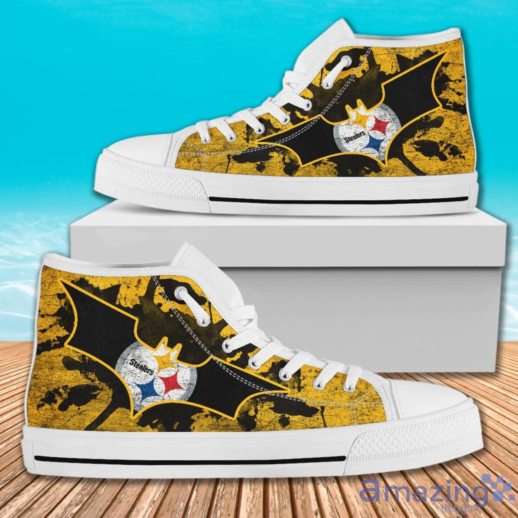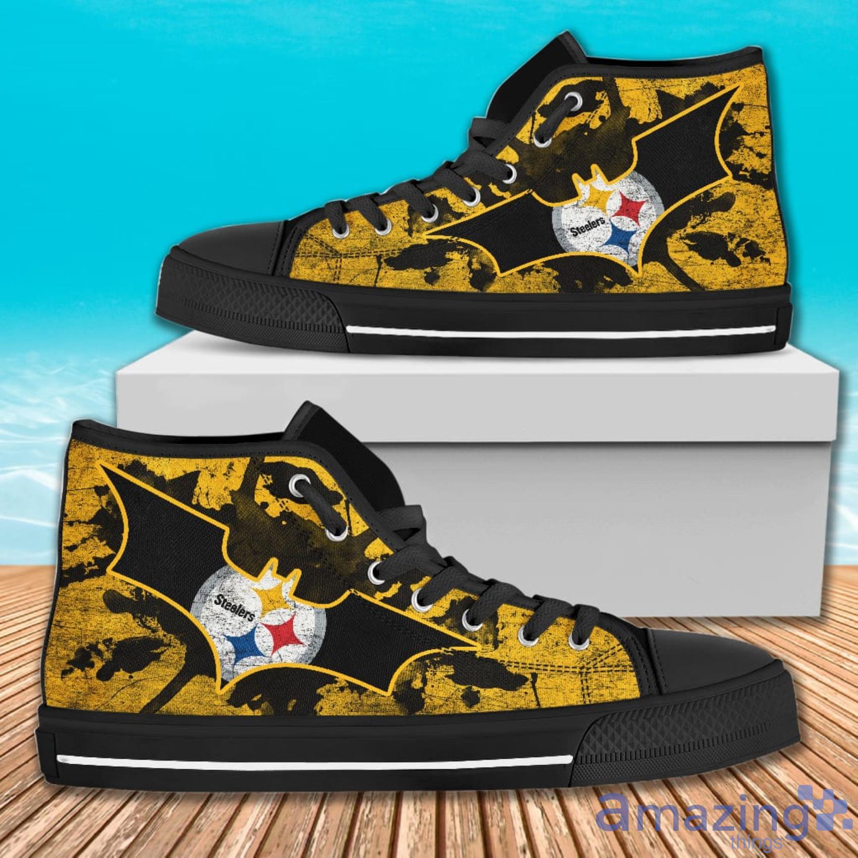 So why wait? Order your own Batman Style Pittsburgh Steelers High Top Shoes for Men and Women today and take your fandom to the next level. With their unbeatable style and undeniable comfort, these shoes are sure to become a staple in your game-day wardrobe.