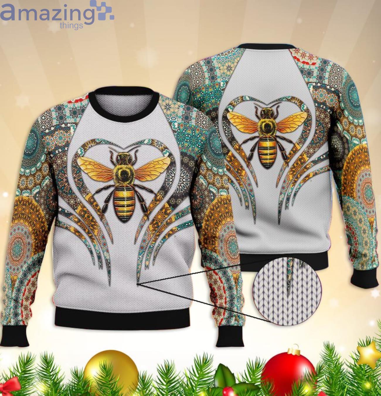 Bee Floral Mandala Pattern 3D All Over Printed Sweater Informations: