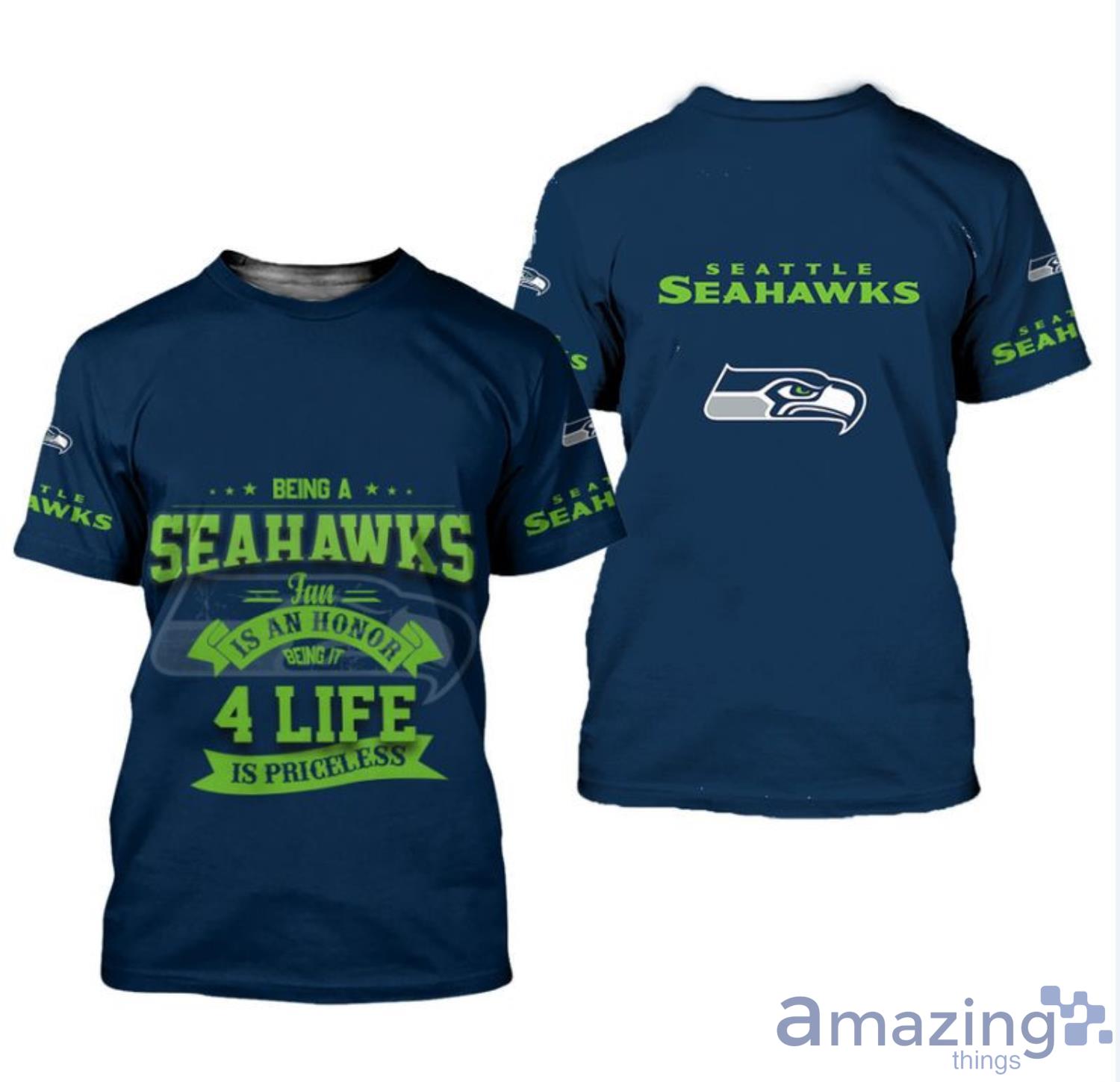 Being a Seahawks fan is an honor. And with this All Over Printed 3D Shirt, you’ll make sure everyone knows it! This shirt features a realistic 3D print of the Seahawks logo on a white background, making it perfect for any fan. Whether you’re cheering on your team at the stadium or wearing it to show your support at home, this shirt is sure to make everyone stop and take notice.