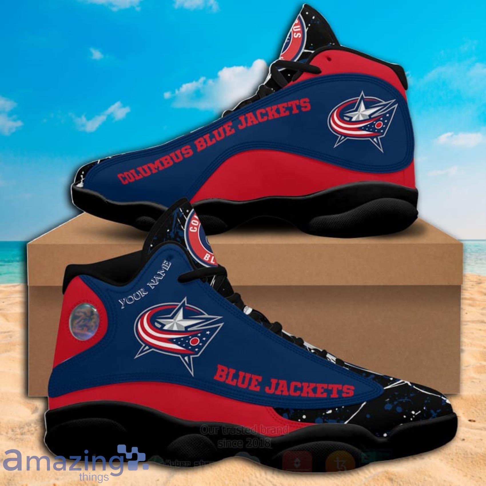 Some of the Best NHL Columbus Blue Jackets Custom Name Paint Stain Air Jordan 13 Sneakers photos