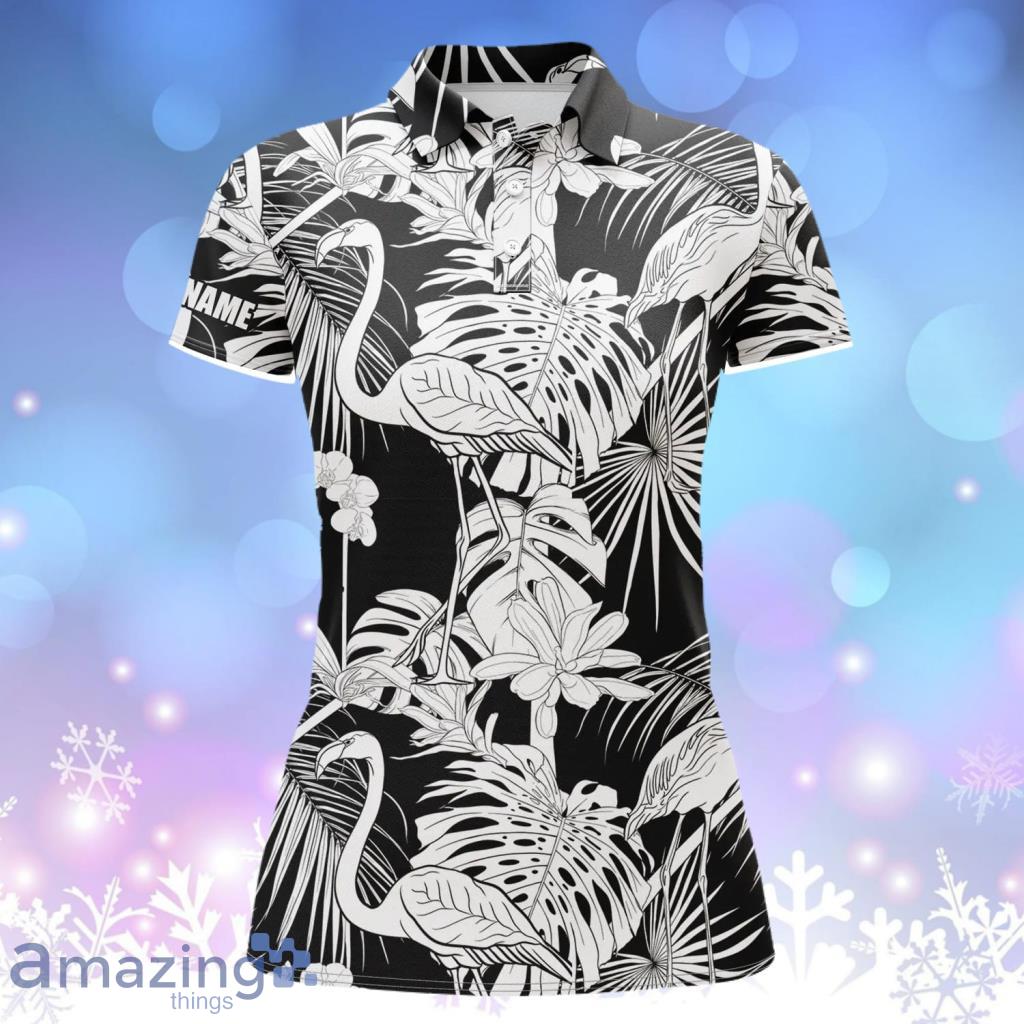 Black And White Tropical Plants Flamingo Polo Shirts Custom Name Womens Golf Wear Information:
