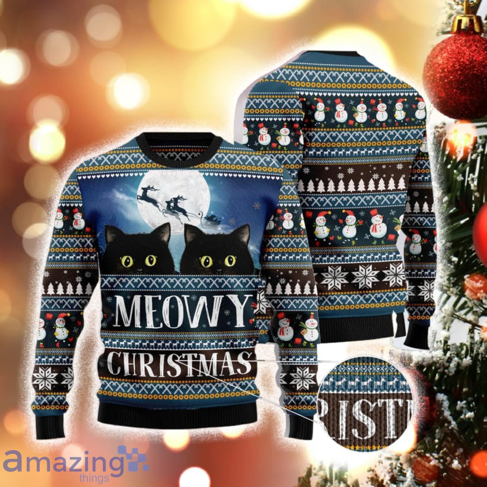 Black Cat Meowy Christmas Moon Light Christmas 3D Sweater