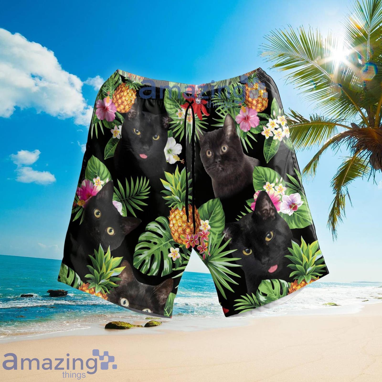 Black Cats Pineapple Tropical Aloha Summer Set Hawaiian Shirt And Shorts