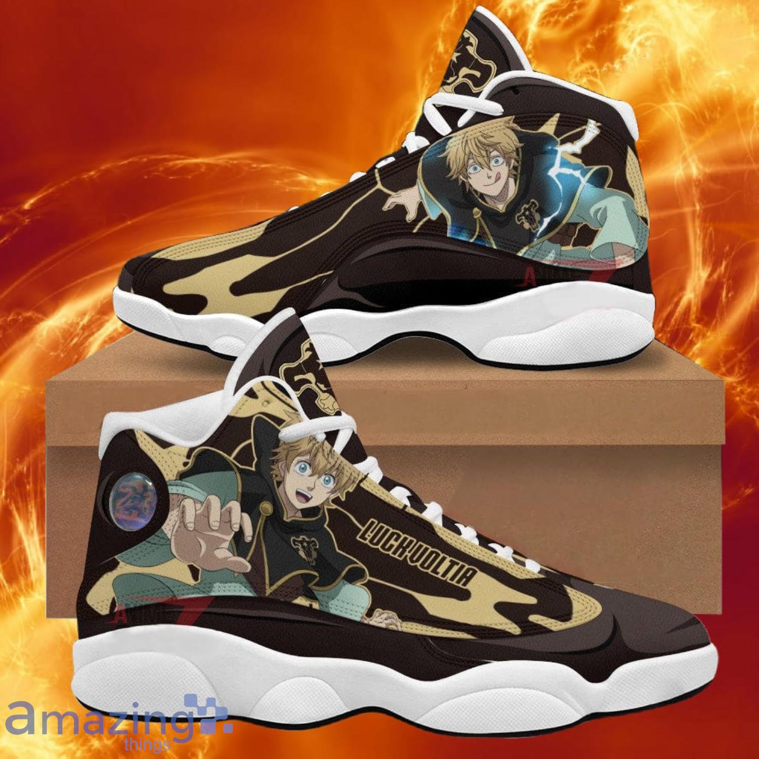 Product: Black Clover Air Jordan 13 Sneakers Luck Voltia Black Bull Anime Shoes Gift For Fans.