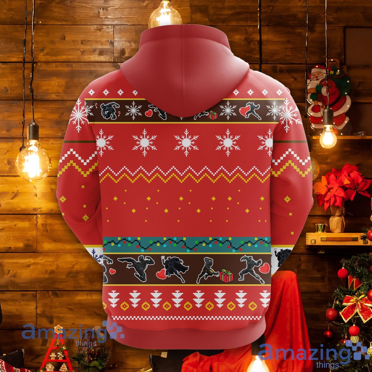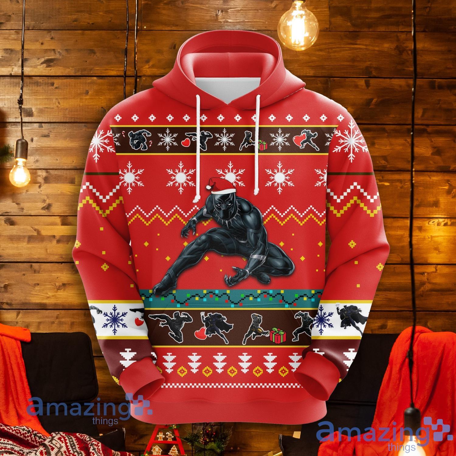 Black Panther Christmas Cute Noel Mc Christmas Pattern All Print Red 3D Hoodie