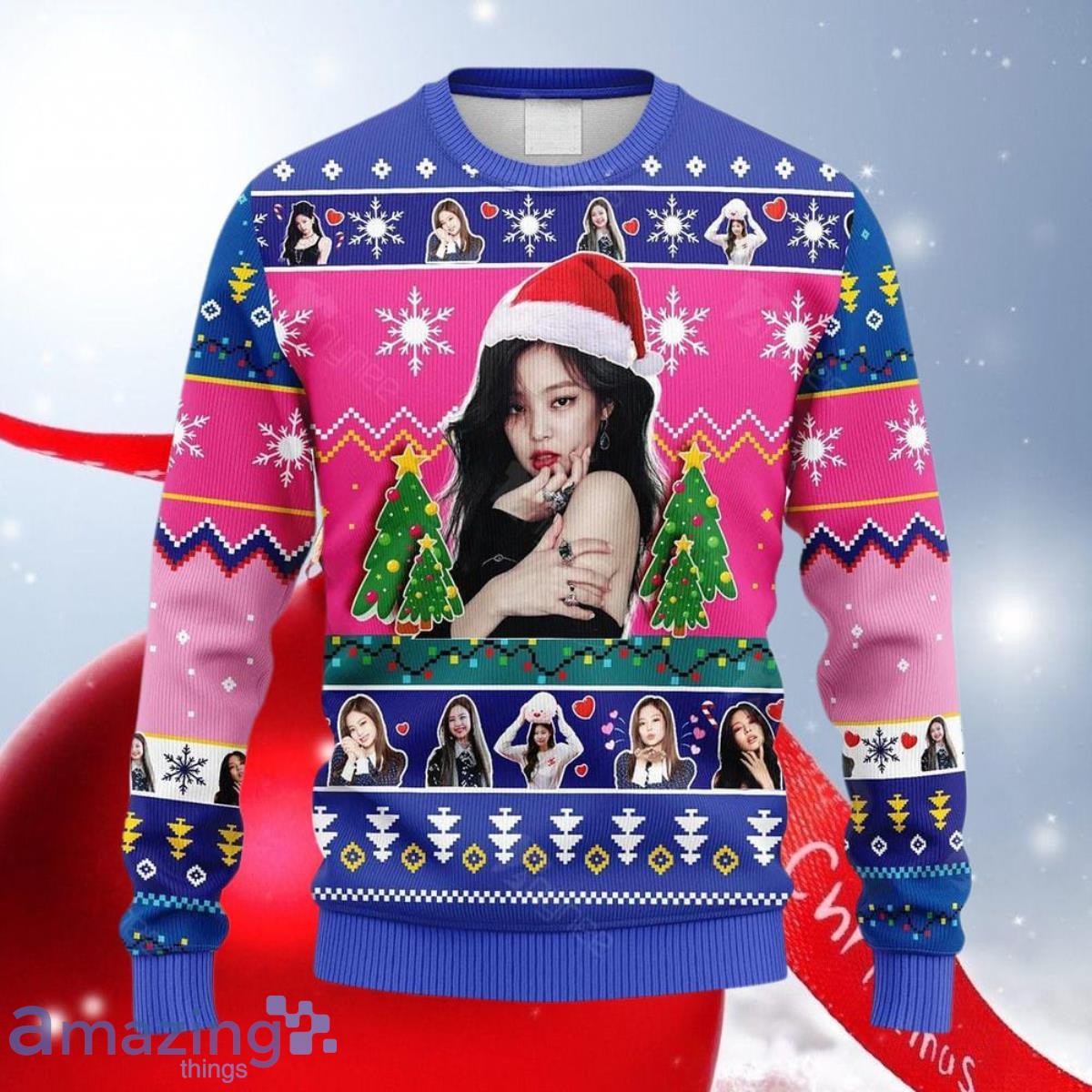 Black Pink Band Santa Jenny Ugly Christmas Sweater Gift For Men Women