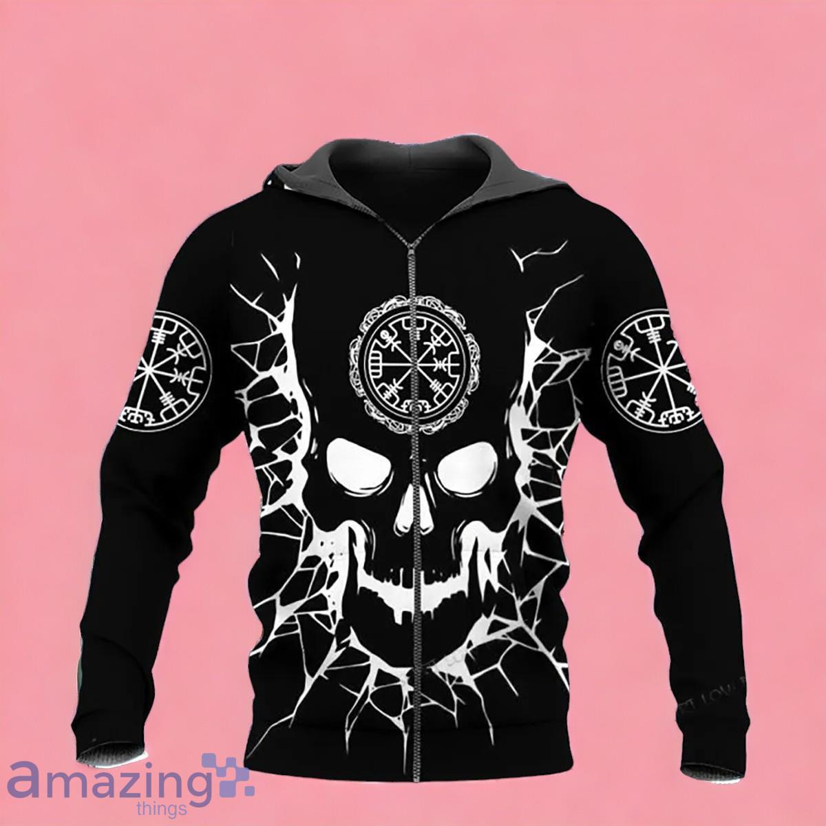 Black White Viking Compass Skull Zip Up 3D Hoodie Gift For Men And Women Information