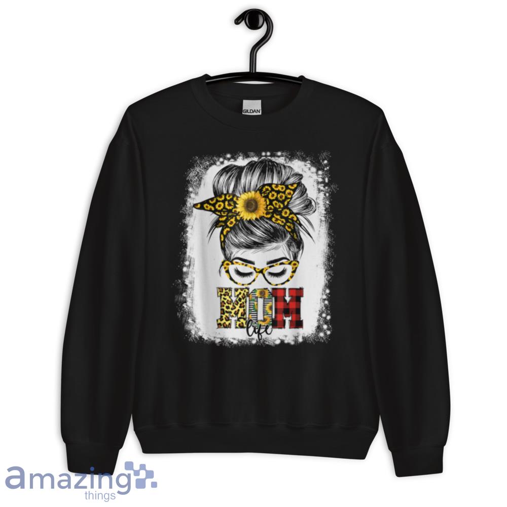 Some of the Bleached Messy Bun Mom Life Sunflower Womens Mother’s Day T-Shirt photos