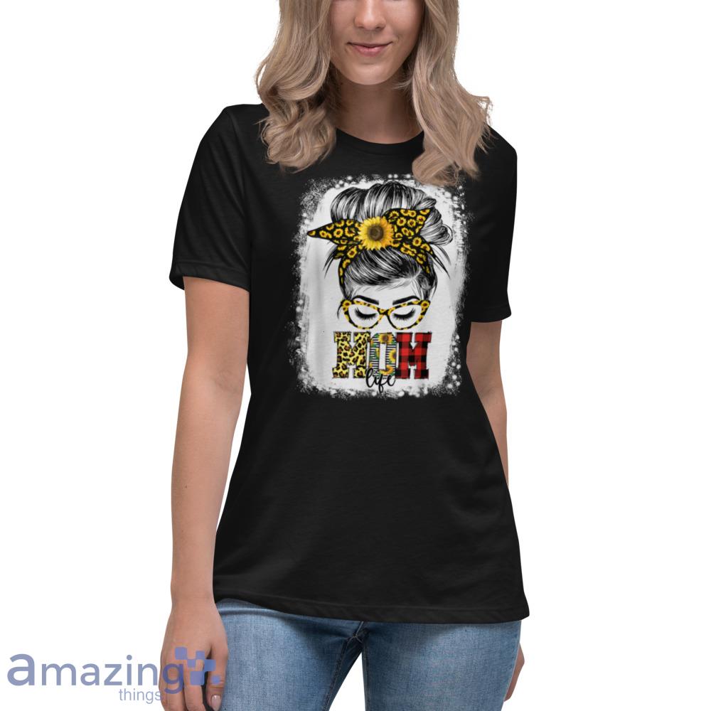 Bleached Messy Bun Mom Life Sunflower Womens Mother’s Day T-Shirt Details