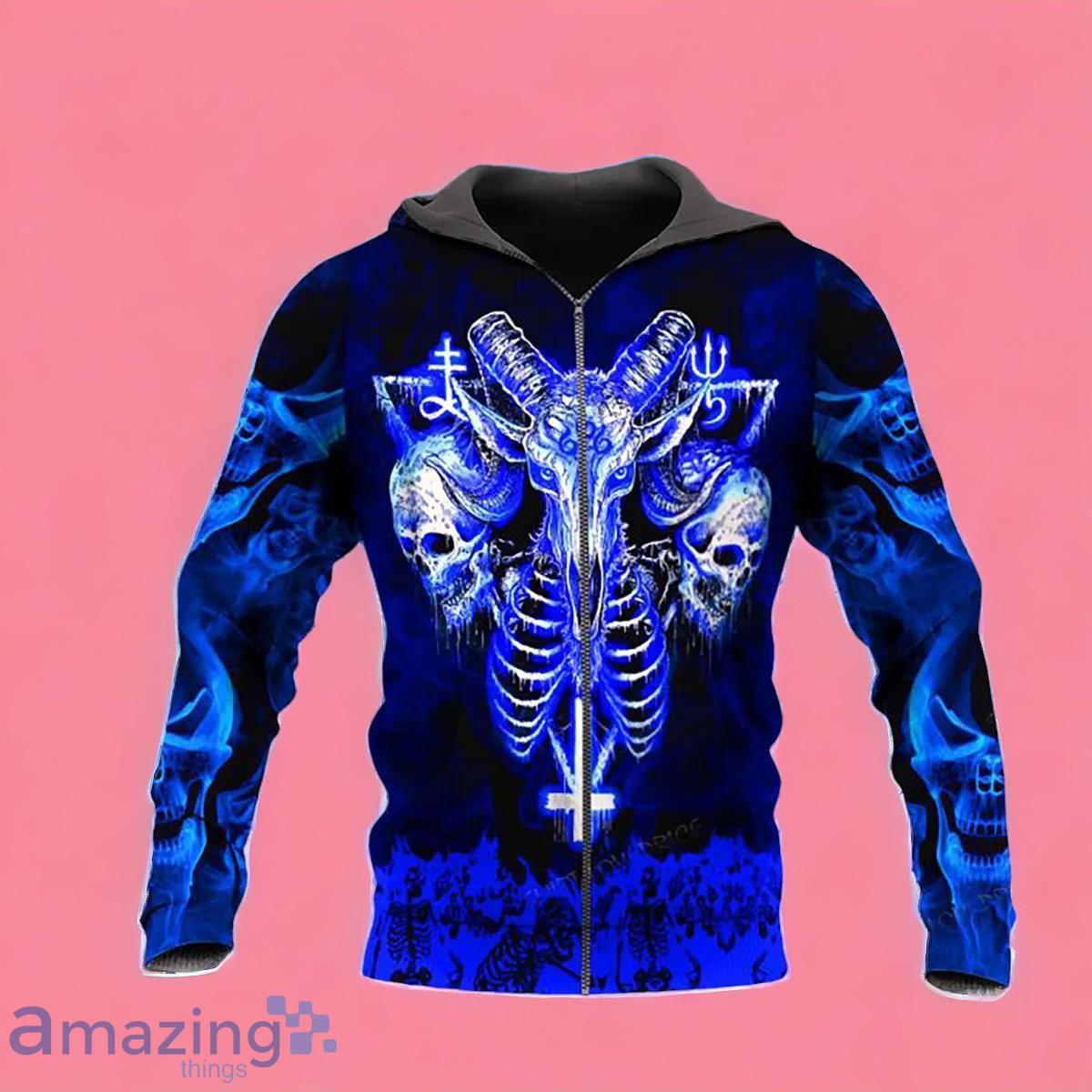 Blue Baphomet Evil Skull Zip Up 3D Hoodie Gift For Men And Women Information