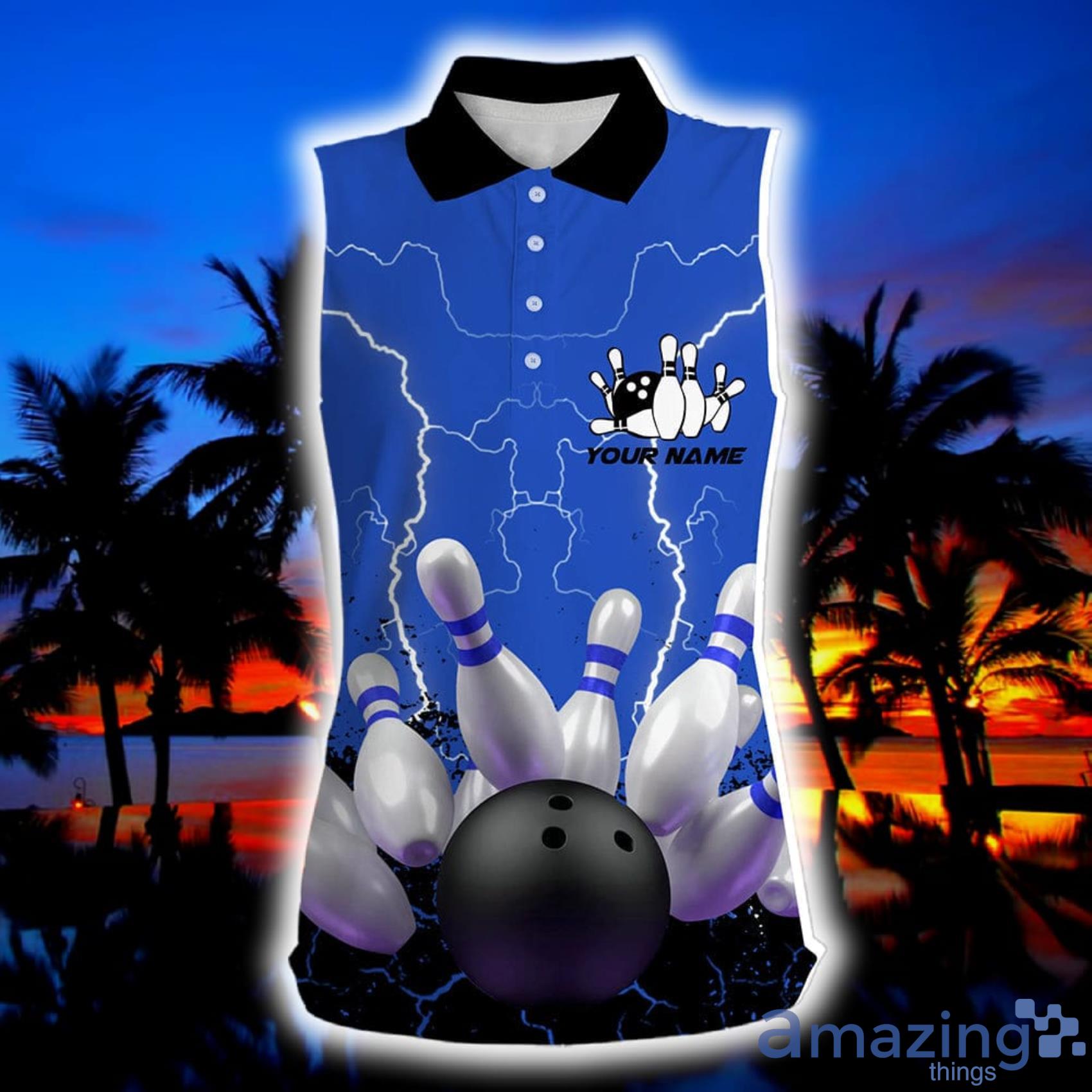 Looking for a stylish, comfortable, and personalized uniform for your female bowling team? Look no further than our Blue Lightning Women Personalized Team Bowling Female Bowling Uniform Womens Sleeveless Polo Shirt!
